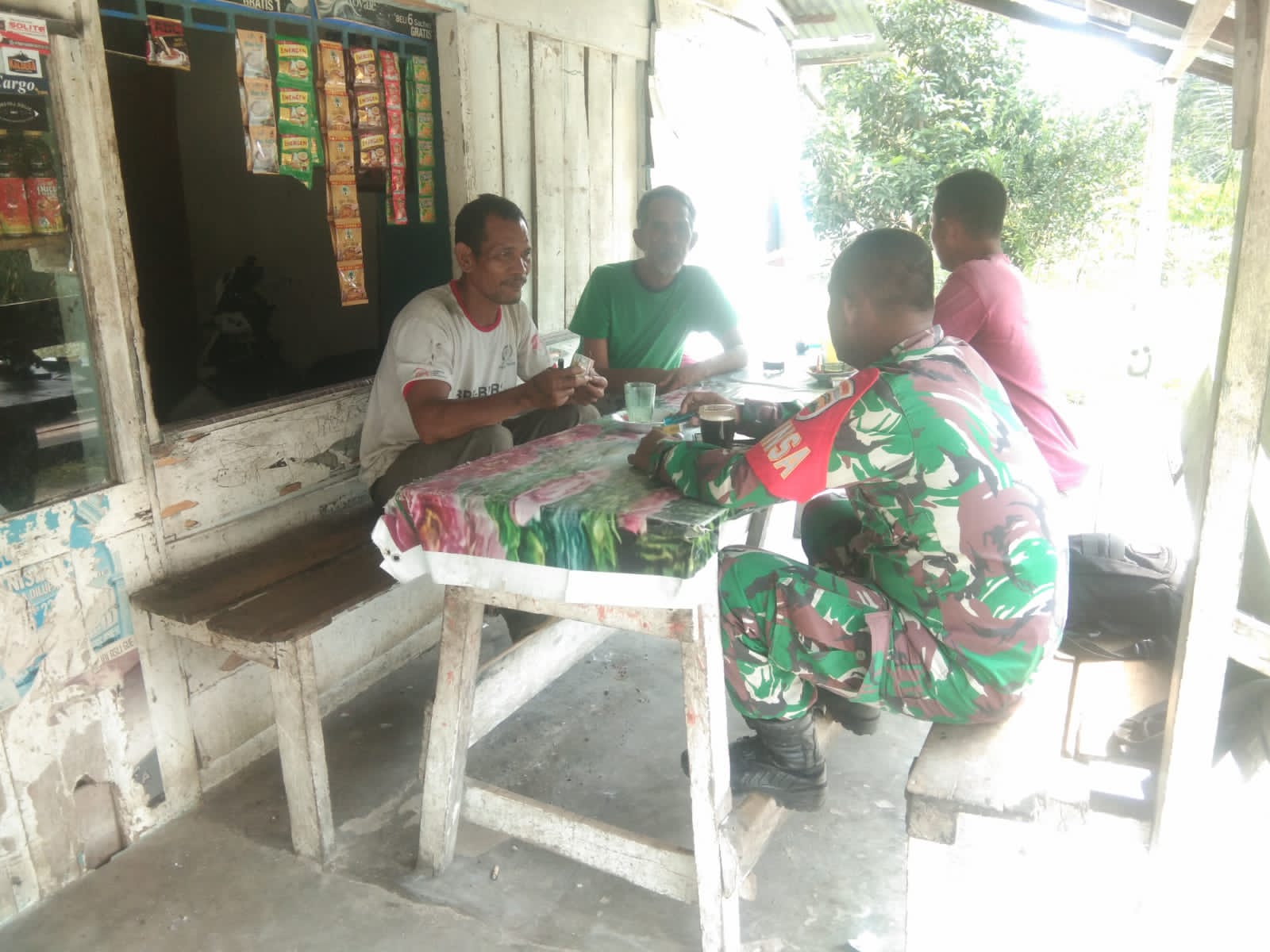 Hangatnya Kebersamaan, Babinsa Koramil 08/Rumbai Barat Ngopi Bareng Warga Yos.