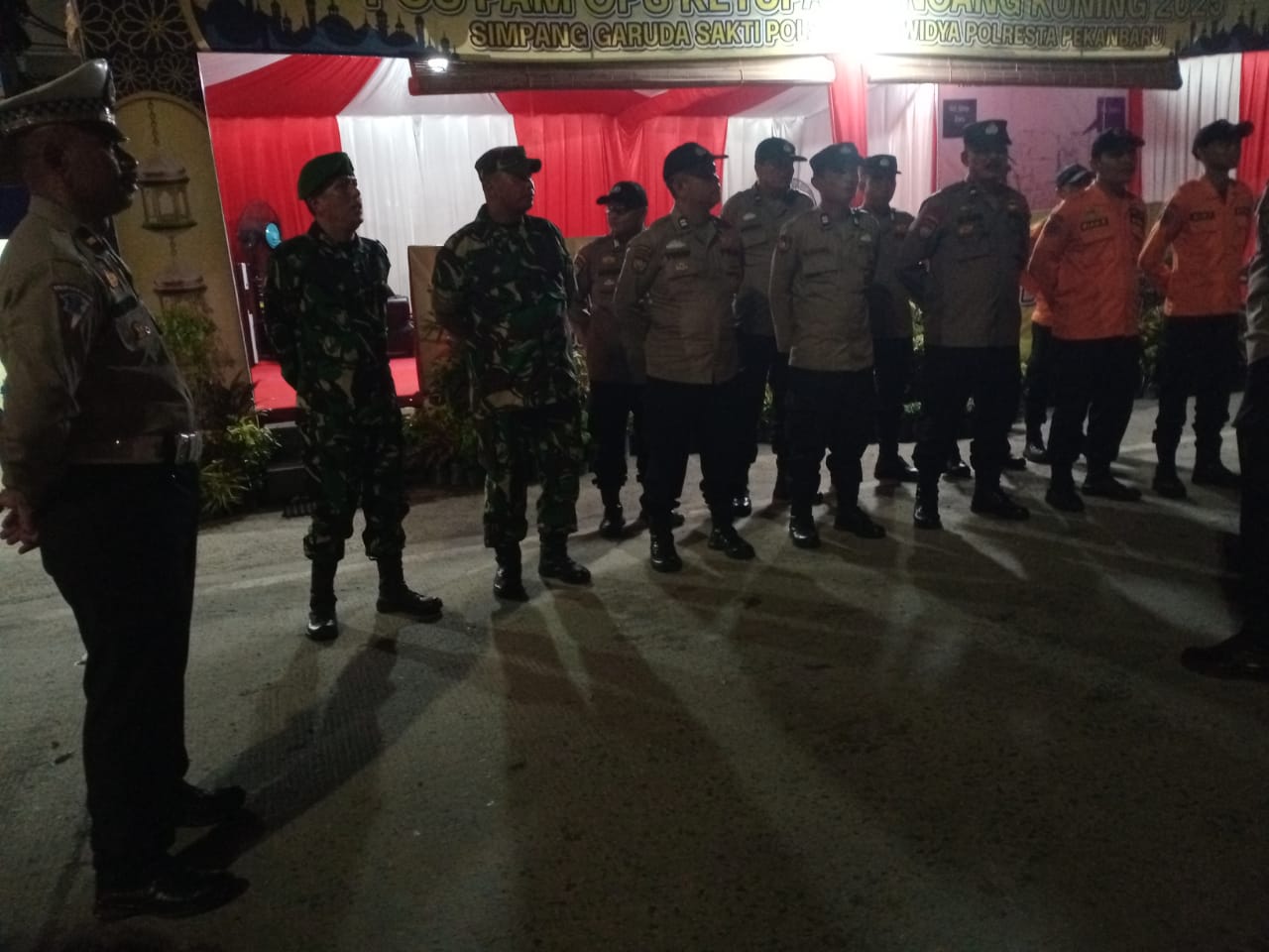 Babinsa Koramil 06/Sukajadi Bersama Tim Gabungan Kawal Pos Pam Operasi Ketupat Lancang Kuning.