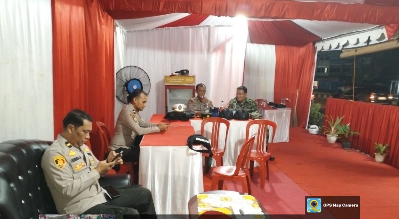 Babinsa Koramil 06/Sukajadi Bersama Tim Gabungan Jaga Keamanan Malam di Pos Pam Simpang Garuda.