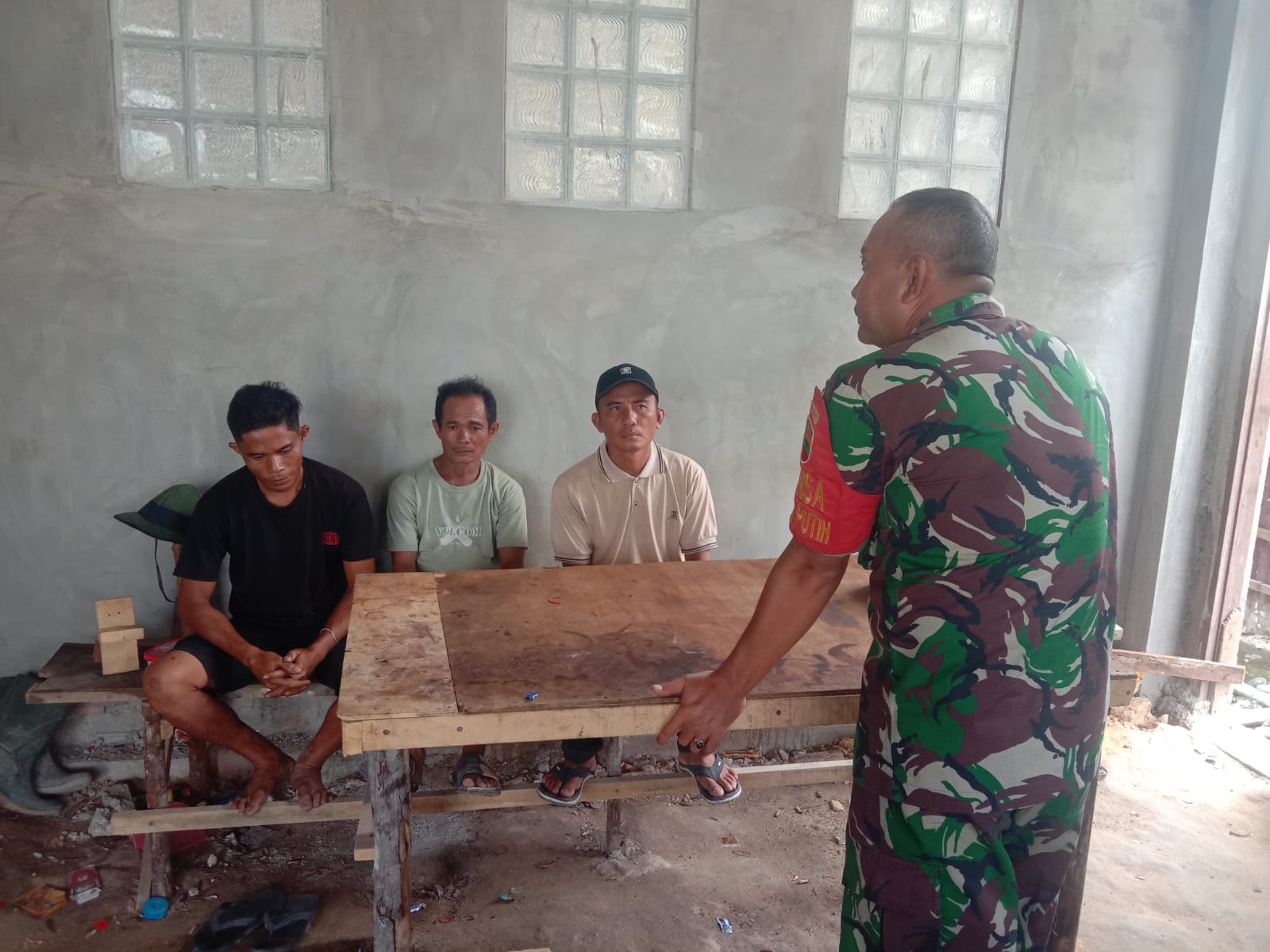 Hari Libur Tetap Bertugas, Babinsa Sertu Wiyono Sambangi Pekerja Bangunan yang.