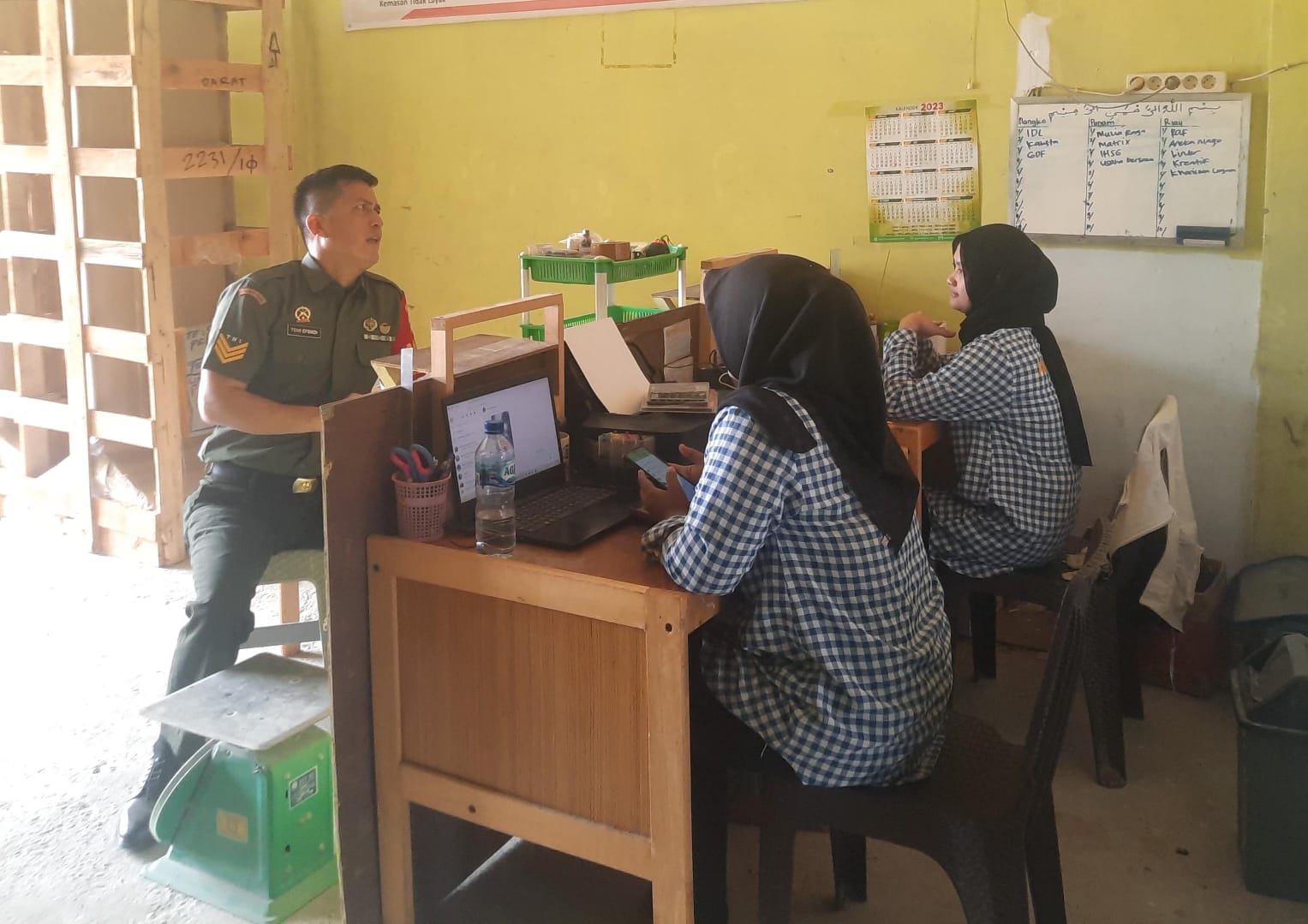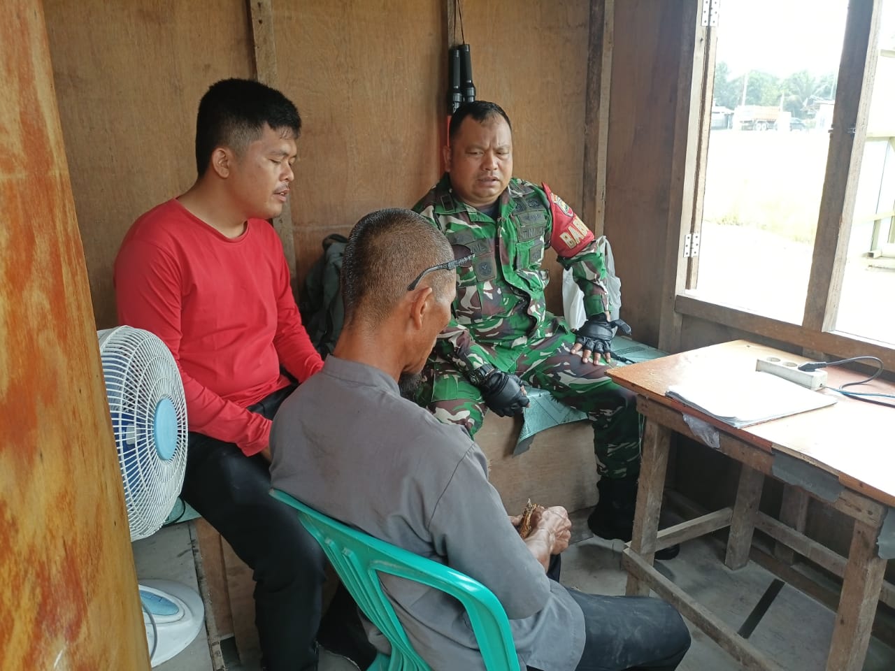 Babinsa Serka Toni Efendi Jalin Komsos dengan Staf Ekspedisi AMAN Bahas Kelancaran Pengiriman Barang di Bulan.