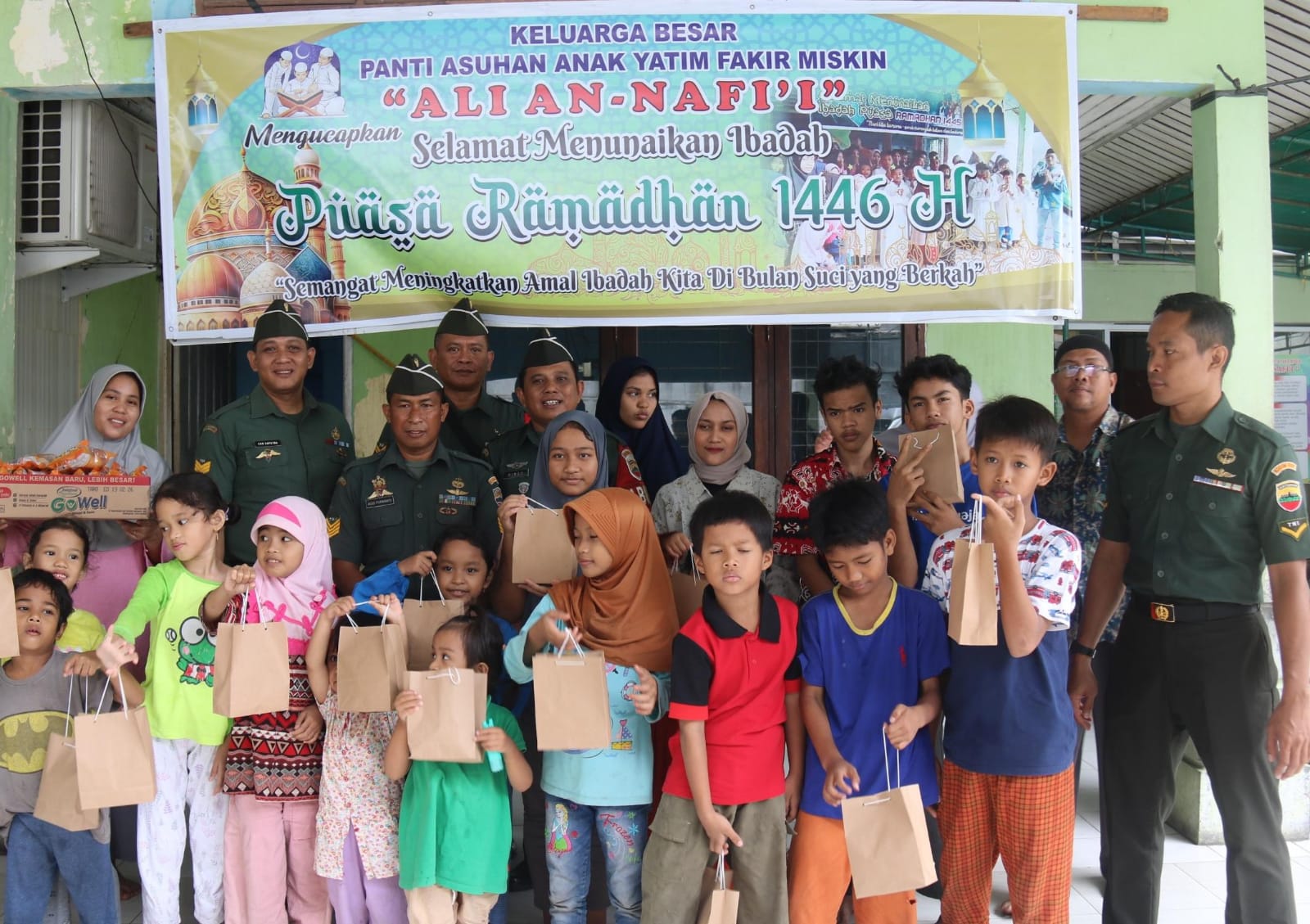 Kodim 0301/Pbr Bagikan 102 Paket Makanan Bergizi ke Anak Panti.