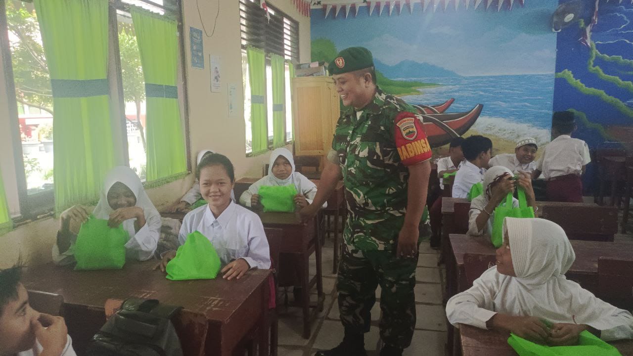 Babinsa Serka Kusman Dampingi Tim SPPG Bagikan 3.278 Porsi Takjil Bergizi untuk Siswa di.
