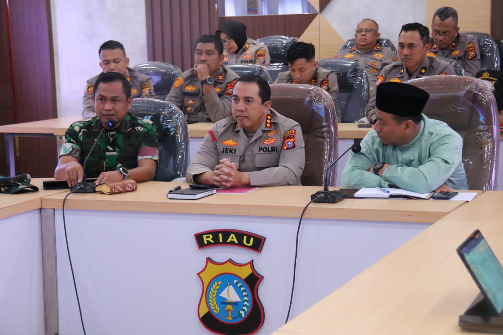 Kasdim 0301/Pbr Hadiri Rapat Koordinasi Lintas Sektoral Ops Lancang Kuning Sambut Idul Fitri 1446.