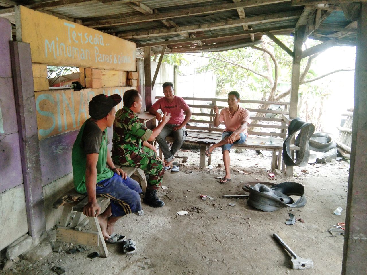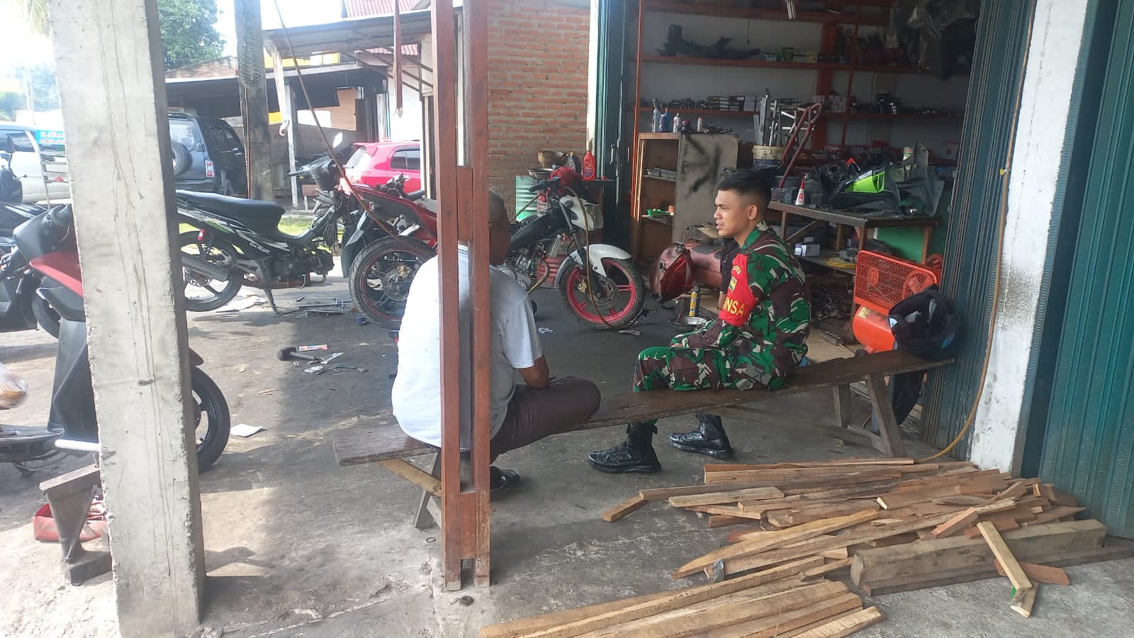 Babinsa Serda Guntur Komsos dengan Pelaku Usaha Bengkel dan Sparepart.