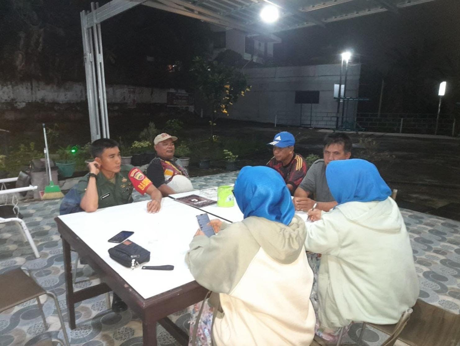 Babinsa Serka Toni Efendi Laksanakan Komsos dengan Staf Kelurahan dan Ketua RT di Tengah Bulan.