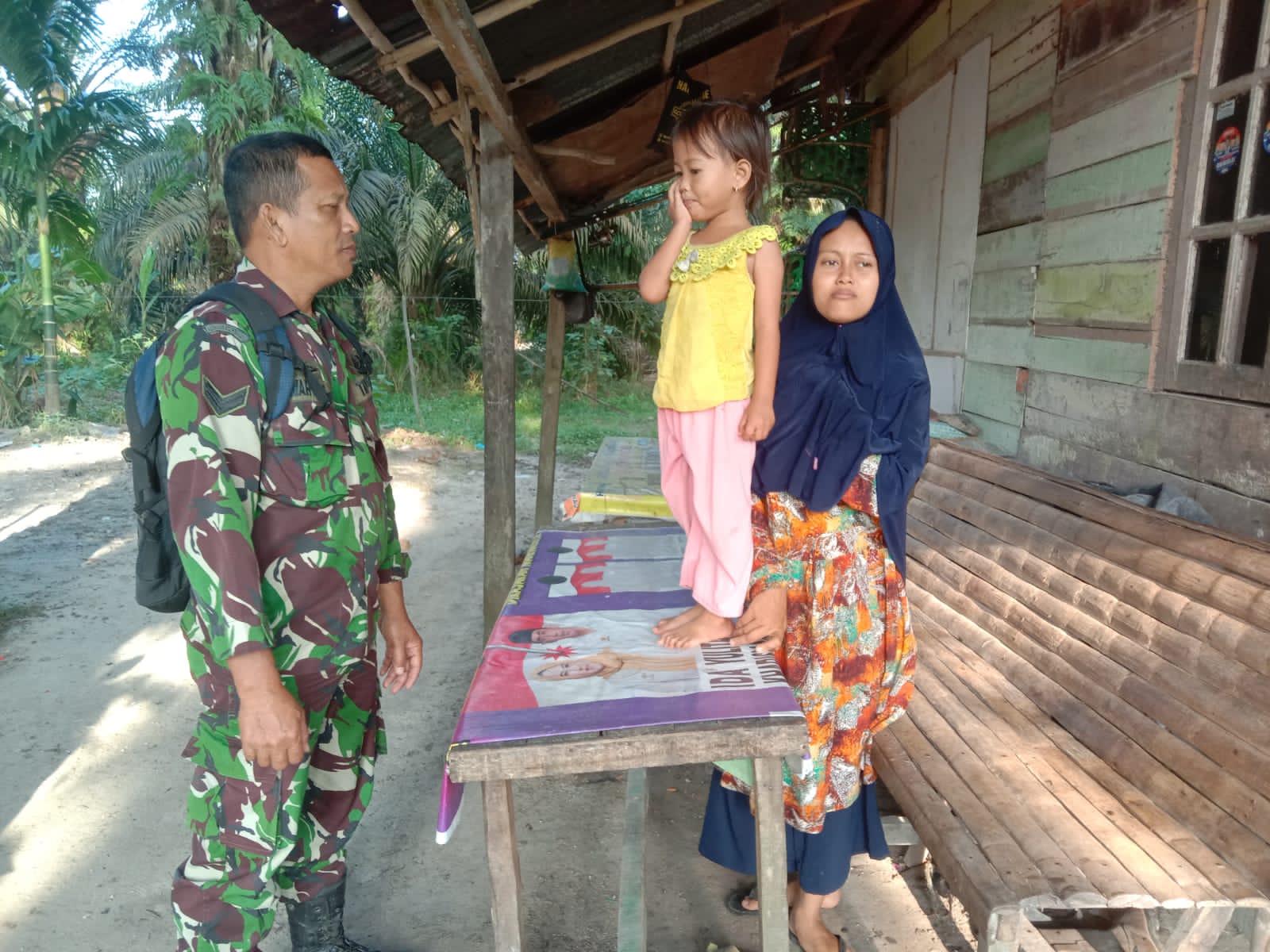 Babinsa Sertu Wahyu Suseno Lakukan Pengecekan Anak Asuh Stunting di Kelurahan Rantau.