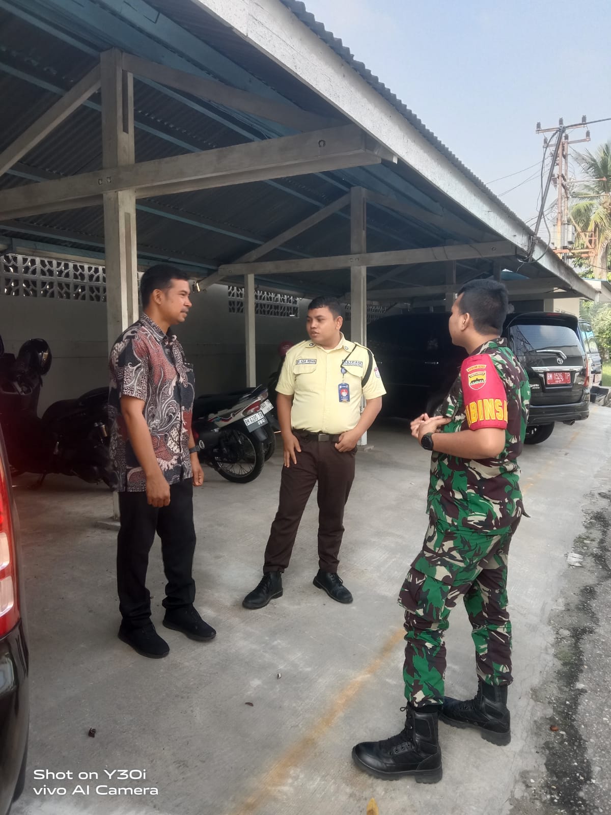 Babinsa Kelurahan Tangkerang Barat Komsos dengan Satpam, Imbau Tingkatkan Keamanan.