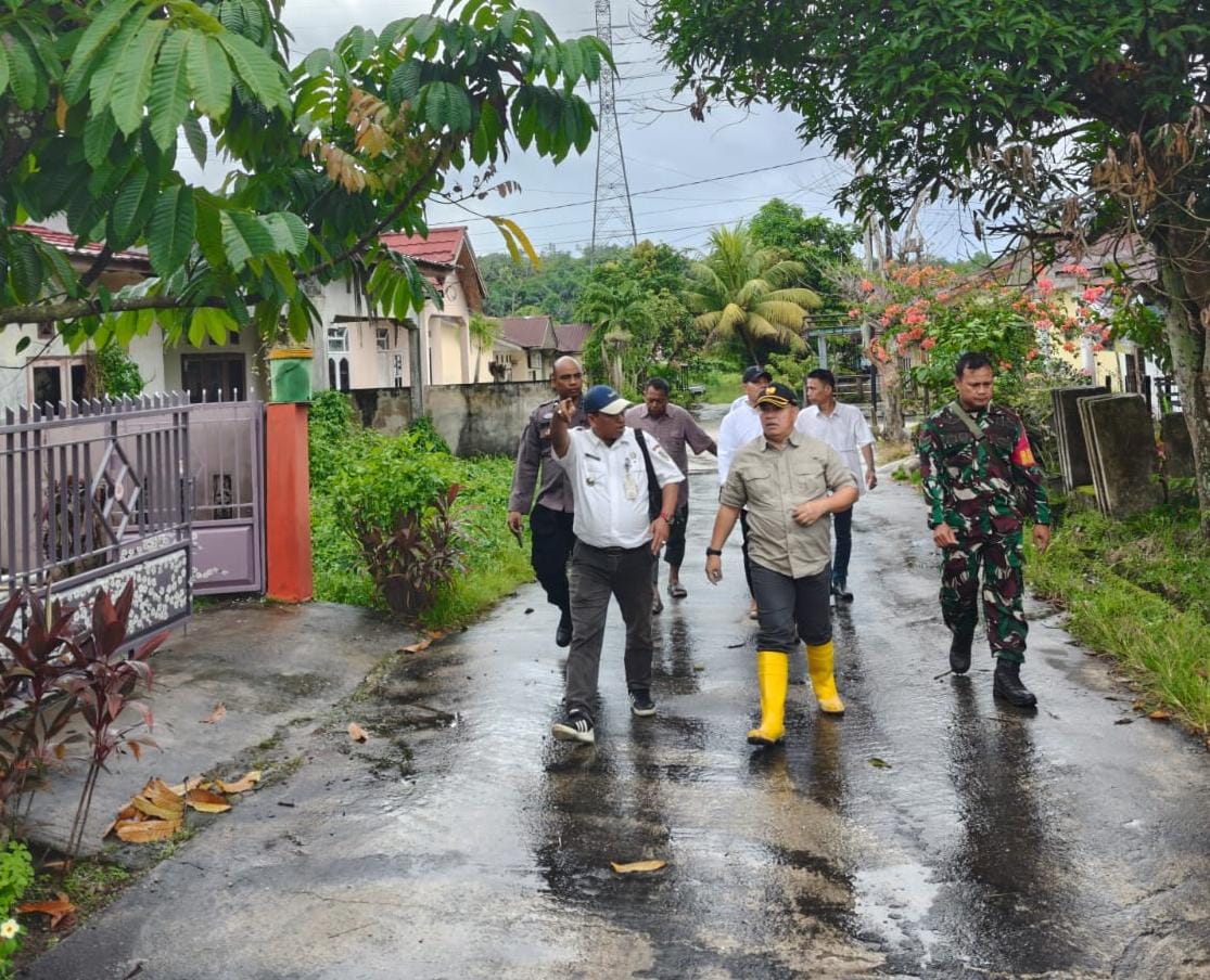 Babinsa dan Dinas PUPR Pekanbaru Tinjau Lokasi Rawan Banjir di Perumahan Bumi Tampan.