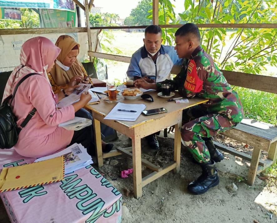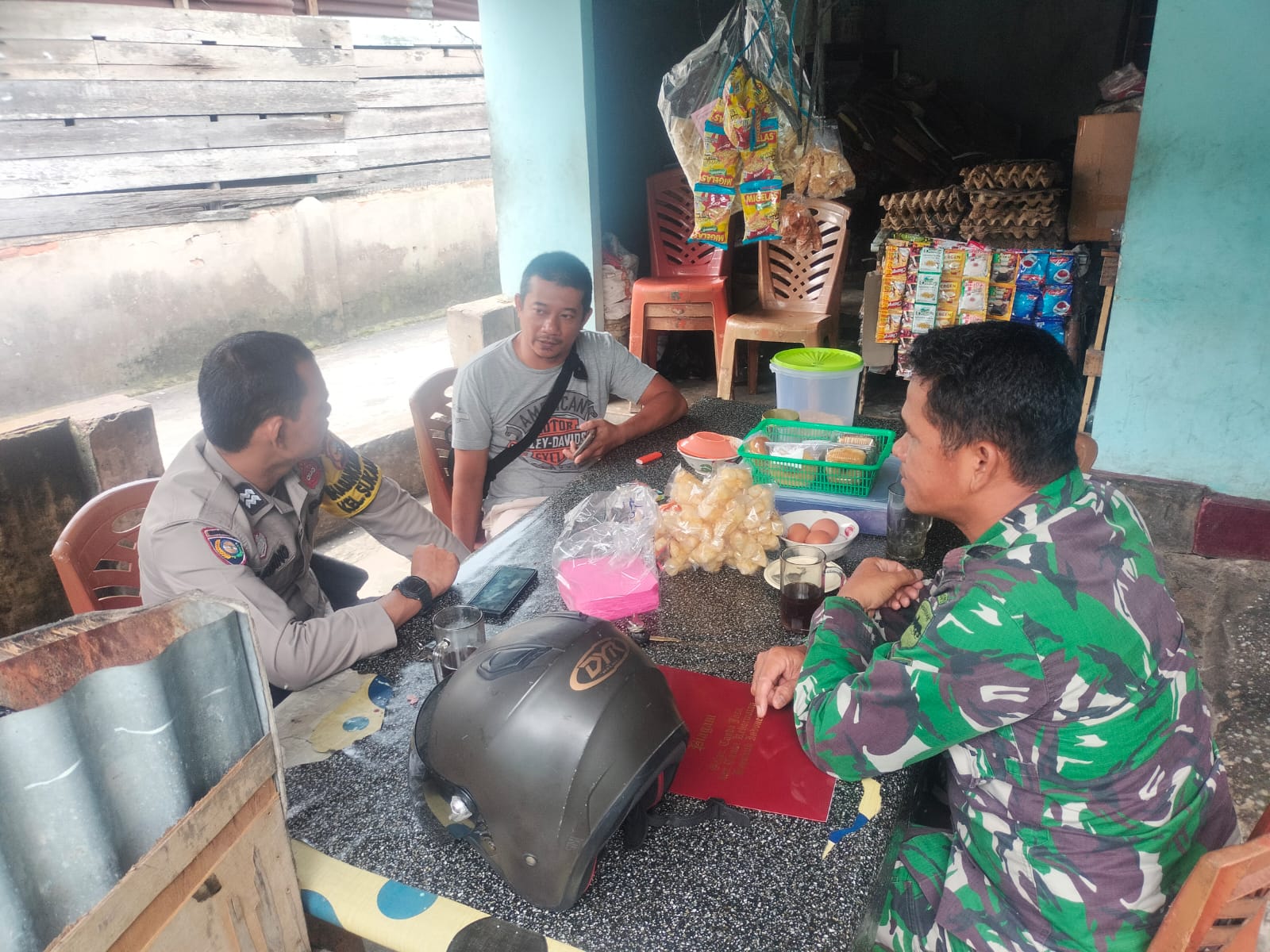 Babinsa Sertu Robert Sitorus dan Bhabinkamtibmas Jalin Komsos dengan Warga.