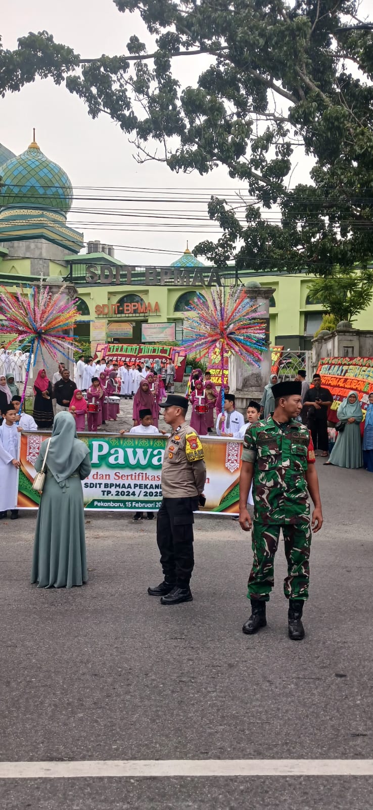 Sertu Khairuddin Laksanakan Pengamanan Pawai SDIT BPMAA Annur di Jalan M. Dahlan hingga Jalan.