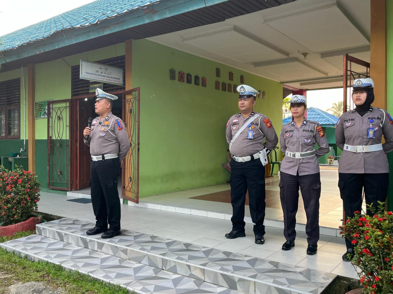 Satlantas Polres Kampar Sosialisasikan Tertib Lalu Lintas di MTS Darul Falah.