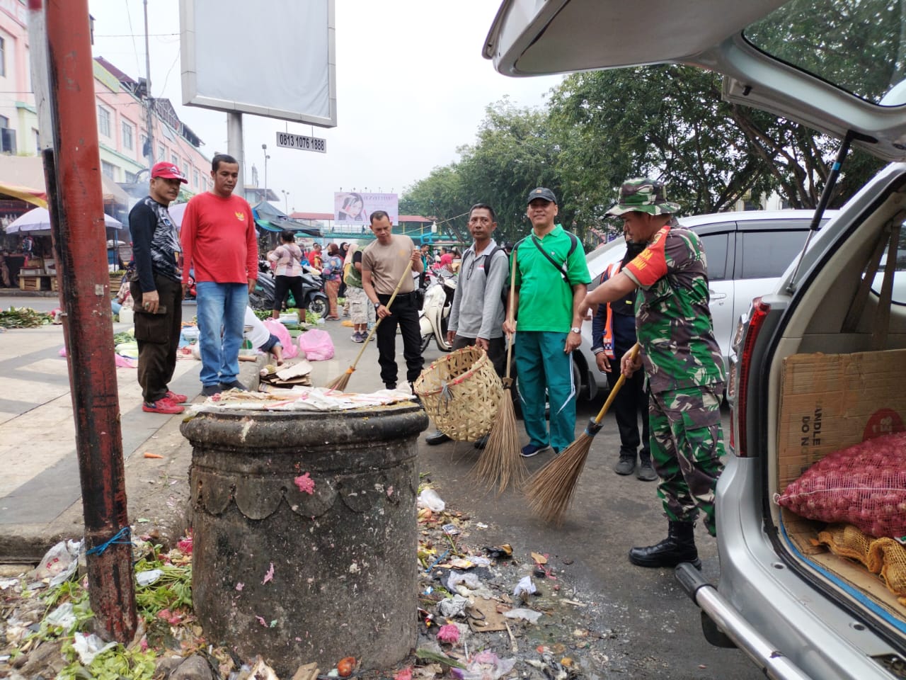 Babinsa Koramil 02 Kota Laksanakan Gotong Royong Bersihkan Pasar Agus.