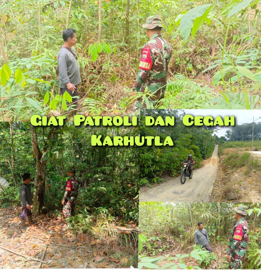 Babinsa Serda Widi Anugrah Patroli dan Sosialisasi Cegah Karhutla di Wilayah Koramil 08 Rumbai.