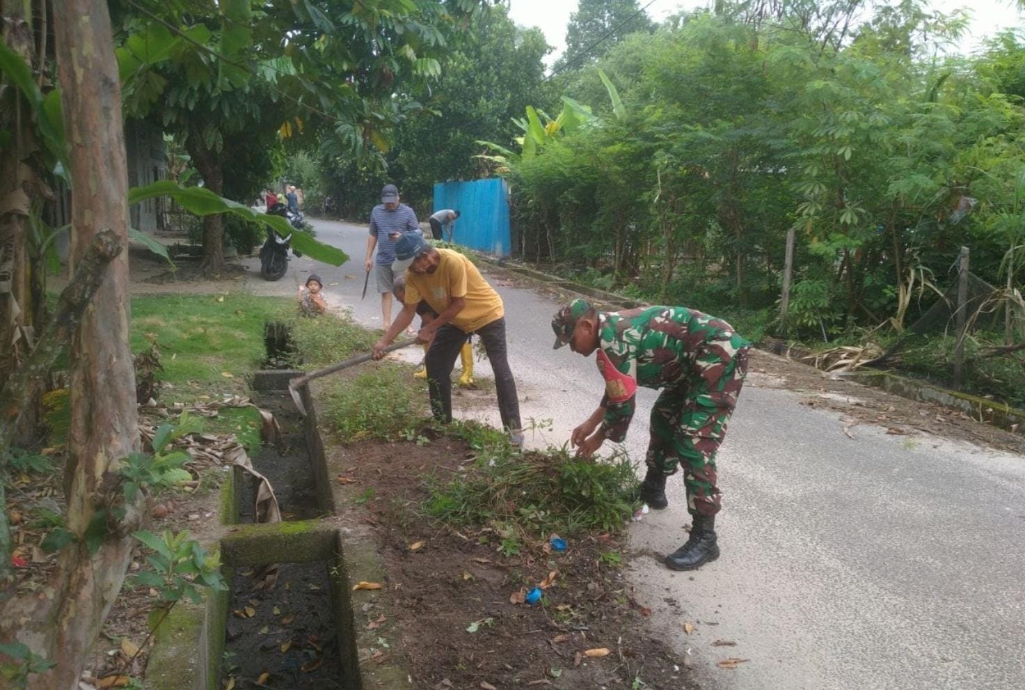 Babinsa Kodim 0301/Pekanbaru Ajak Warga Goro Bersihkan Jalan Lingkungan di Wilayah.