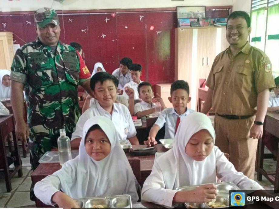 Babinsa Koramil 06 Sukajadi Dampingi Pembagian Makan Sehat Bergizi di SD IT Fadhilah .