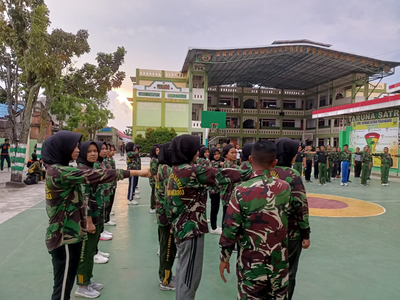 Bentuk Pembinaan Disiplin dan Kebugaran Fisik, Serma J Tanjung Berikan Latihan PBB Kepada Siswa SMK Taruna.