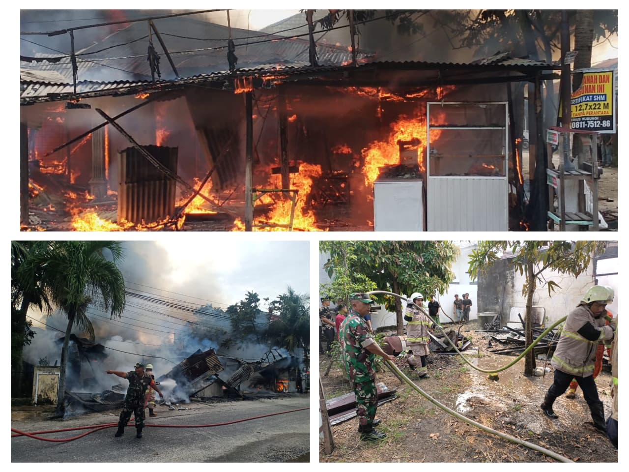 Sigap dan Aksi Nyata Babinsa Koramil 06/Sukajadi Padamkan Api Lahap Tiga Rumah Petak Diduga Akibat Ledakan Tabung.