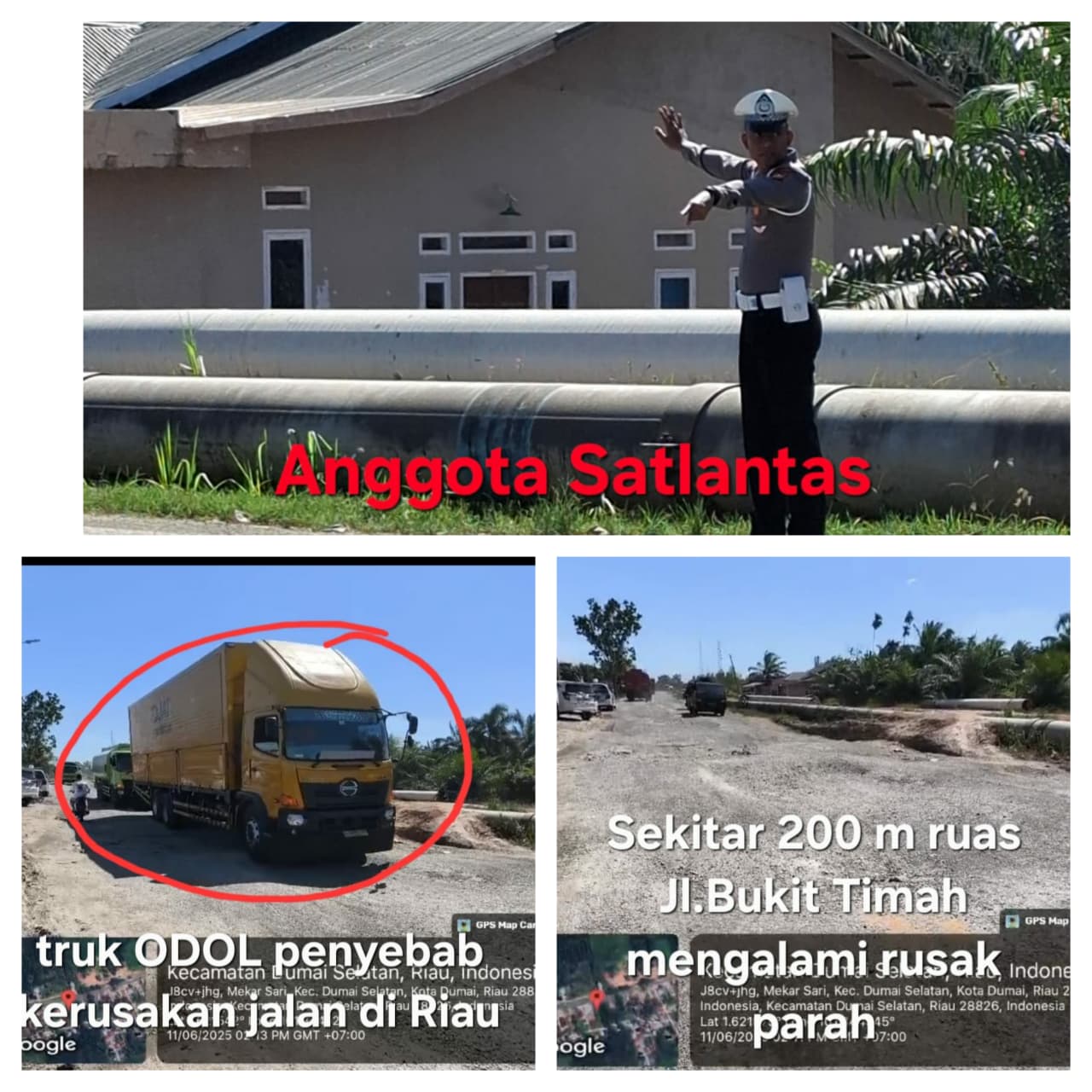Truk ODOL Biang Masalah, Jalan Bukit Timah Diperbaiki Sementara oleh Polres Dumai dan.