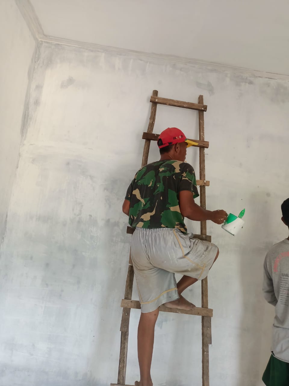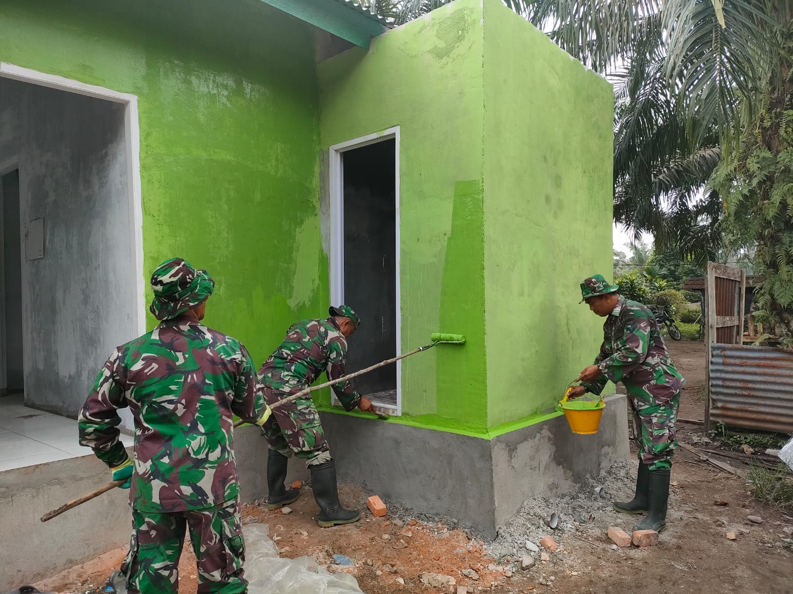Pelaksanaan kegiatan sasaran fisik TNI Manunggal Membangun Desa (TMMD) ke-114 Kodim 0301/Pekanbaru sedang melakukan pengecatan dinding bagian luar Rumah Tidak Layak Huni (RTLH) milik Prahara, warga Jalan Bunga Tombak RT 06 RW 02 Kelurahan Sialang.