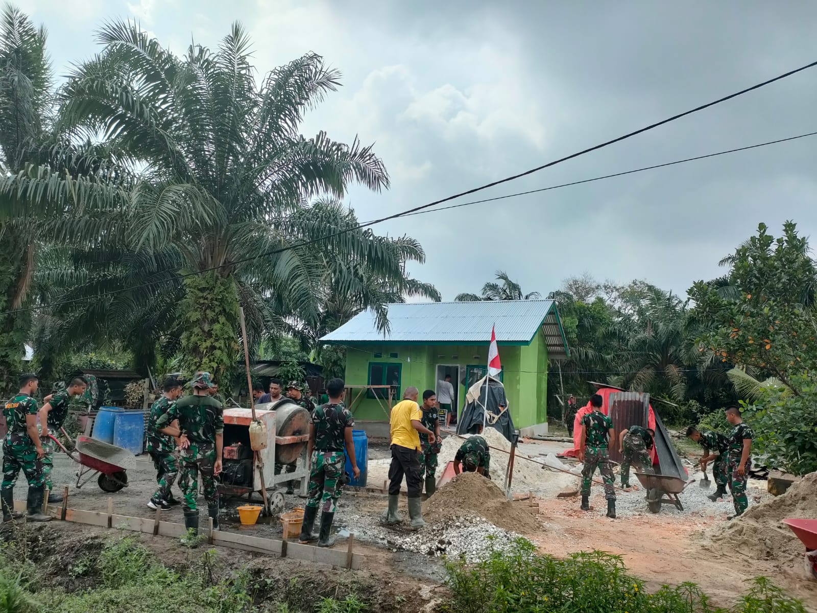 Satuan tugas (Satgas) TNI Manunggal Membangun Desa (TMMD) ke 114 Kodim 0301/PBR terus menggesa pembangunan Rumah Tidak Layak Huni (RTLH) milik Prahara, warga Jalan Bunga Tombak di Kelurahan Sialang Rampai, Kecamatan Kulim, Pekanbaru, Sabtu.