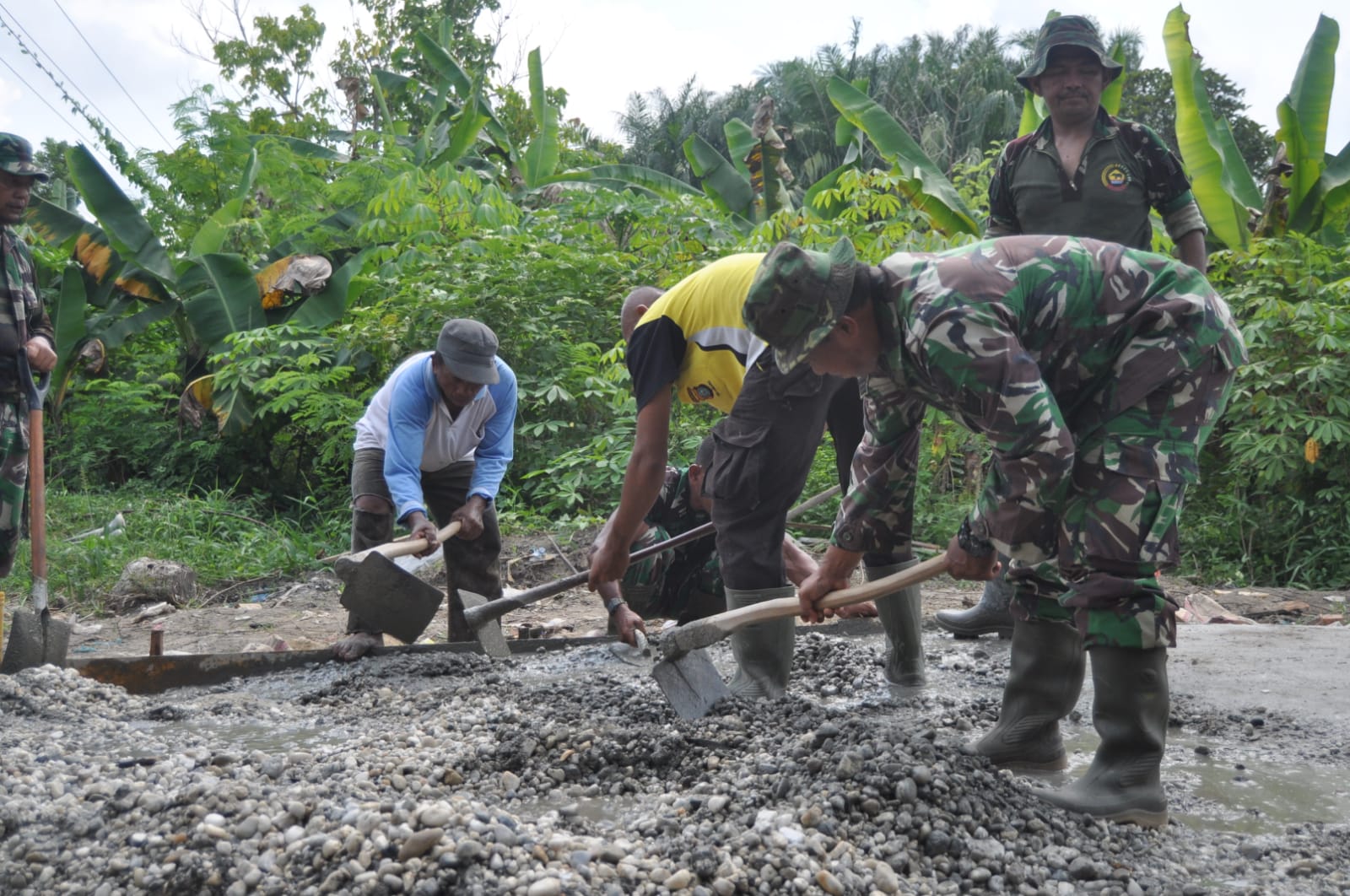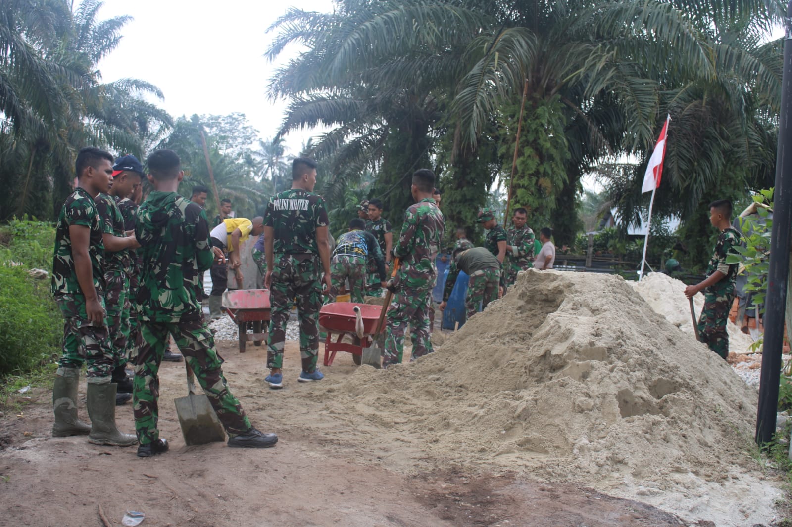 Apa yang bisa dilakukan tukang bangunan, juga bisa dilakukan TNI terutama anggota Satgas TMMD ke-114 Kodim 0301/Pekanbaru dalam menuntaskan pekerjaan sasaran fisik.