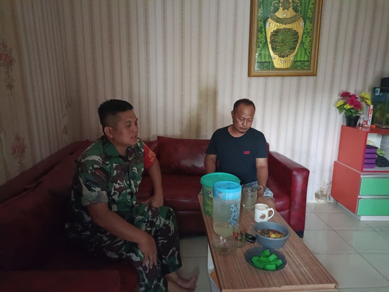 Babinsa Koramil 06/Sukajadi Kodim 0301/PBR, Serka Kusman Darmanto melaksanakan Komsos dengan dirumah tokoh masyarakat, Babas Jalan Dahlia RT 02 Rw 02 Kelurahan Kedungsari Kecamatan Sukajadi Kota Pekanbaru, Minggu.