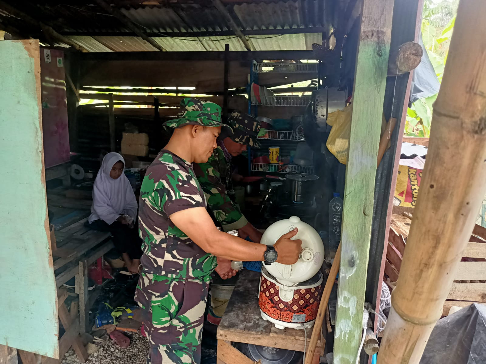 Pelaksanaan kegiatan TMMD ke- 114 tahun 2022 Kodim 0301/PBR dalam melaksanakan renovasi rumah tidak layak huni diatas lahan 6 x 6 meter milik warga kurang mampu, Prahara (50) terus.