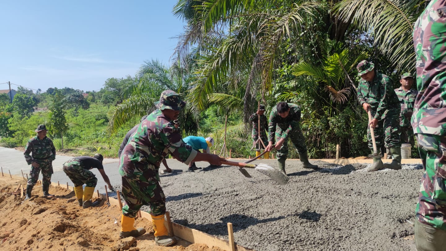 Tim Satuan Tugas (Satgas) Pra TNI Manunggal Membangun Desa (TMMD) ke 114 Kodim 0301/PBR terus melanjutkan program fisik yaitu pengecoran.