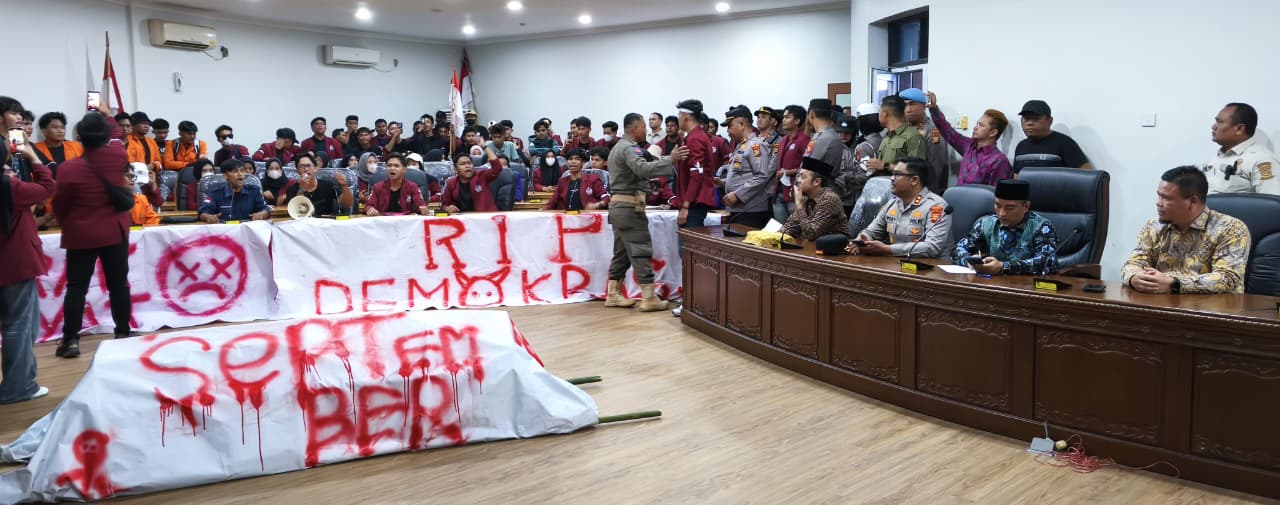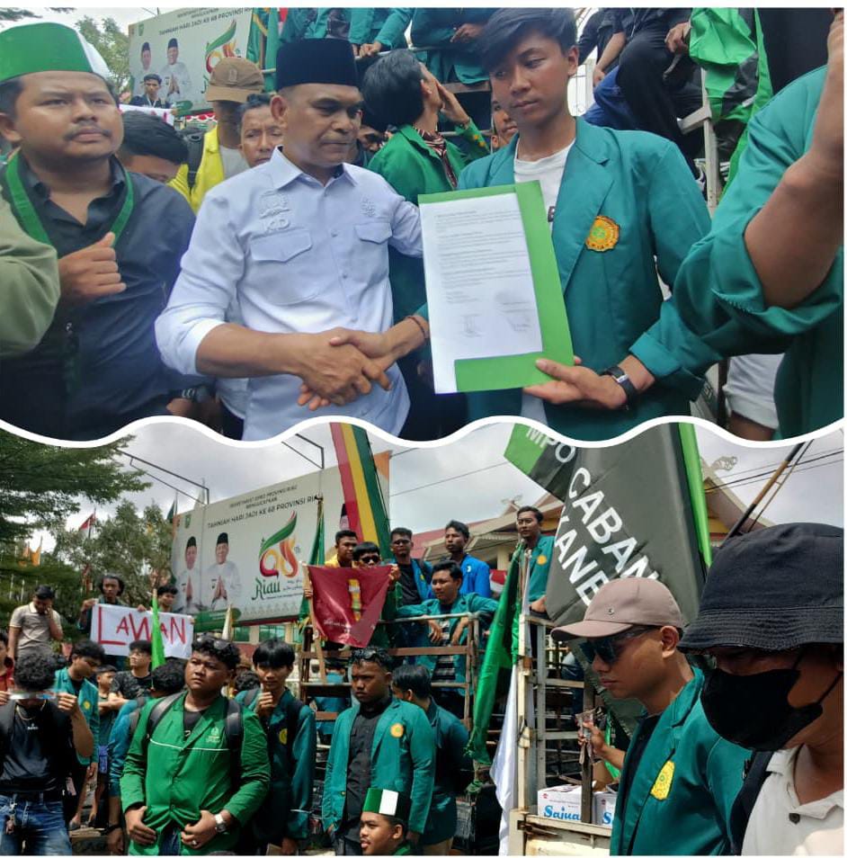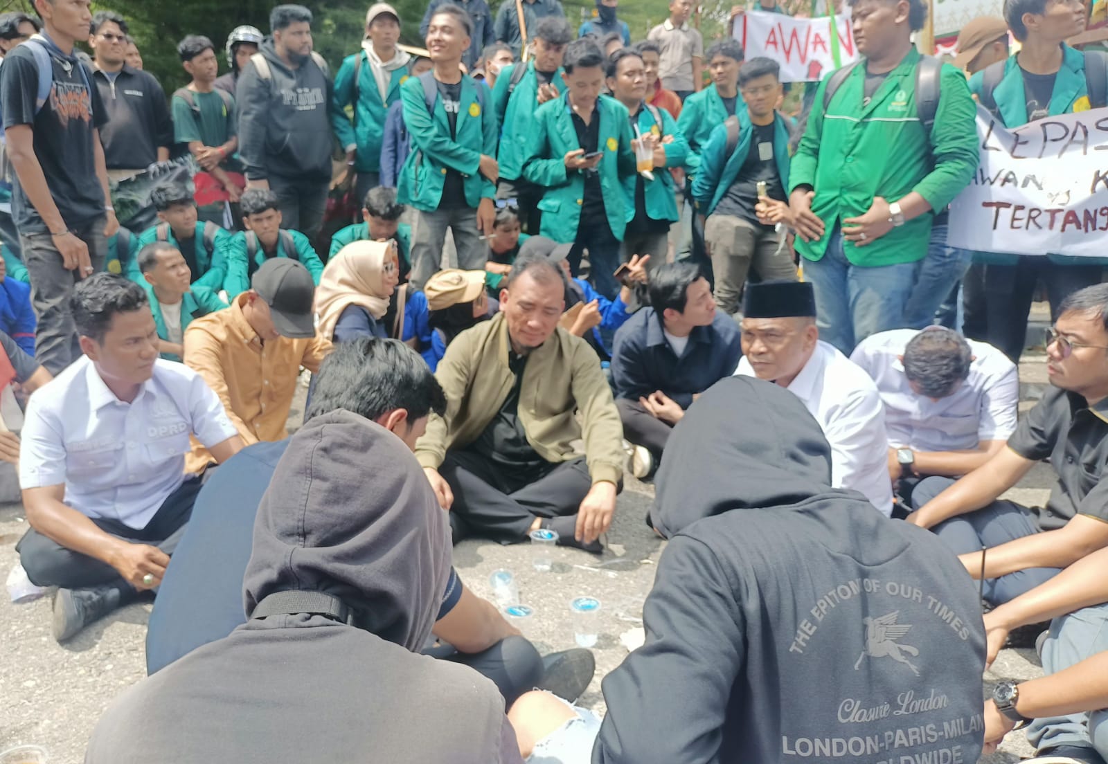 Ketua DPRD Riau dan Anggota Duduk Lesehan di Aspal Bersama Mahasiswa di Tengah Unjuk.