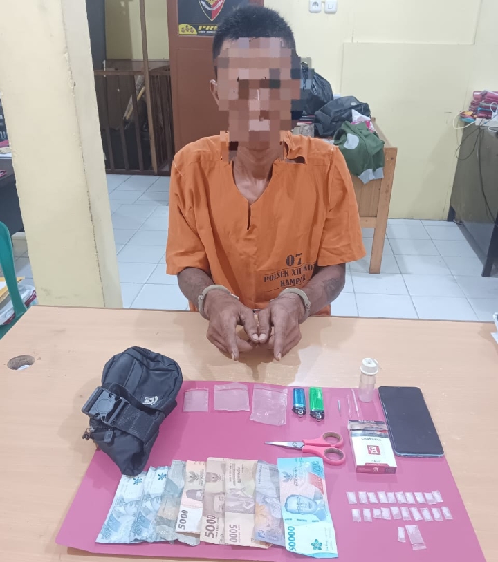 Polsek XIII Koto Kampar Tangkap Pengedar Sabu di Desa Sibiruang, Barang Bukti Lengkap.