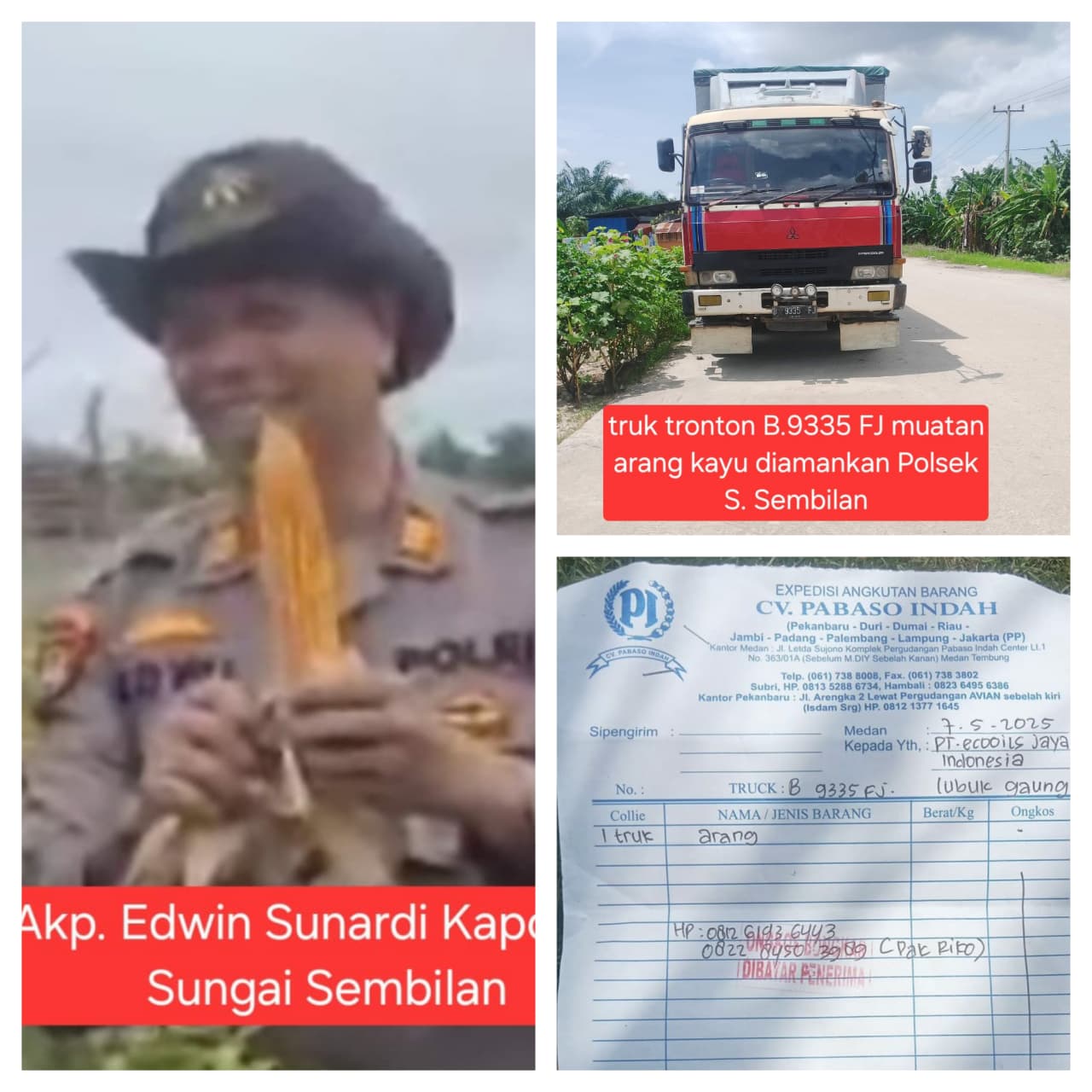 Kapolsek Sungai Sembilan Telusuri Asal Usul ±10 Ton Arang Kayu Diduga.