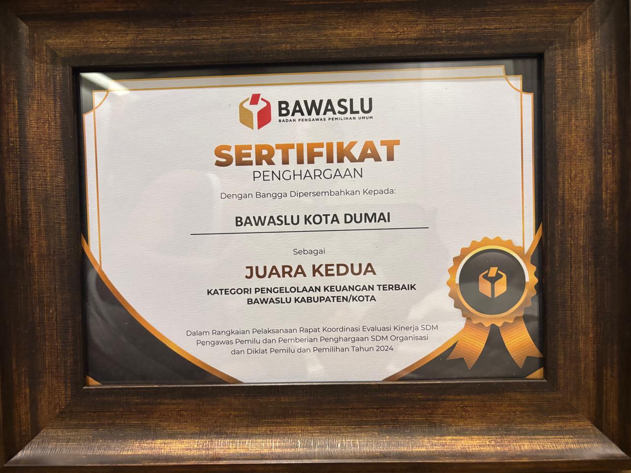 Bawaslu Kota Dumai Raih Juara II Pengelolaan Keuangan Terbaik.