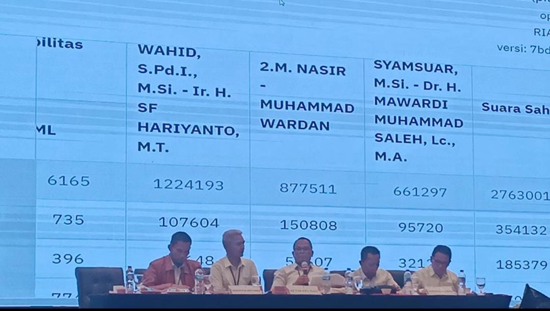 KPU Riau Umumkan Hasil Rekapitulasi, Paslon Abdul Wahid- SF Hariyanto Raih Suara.