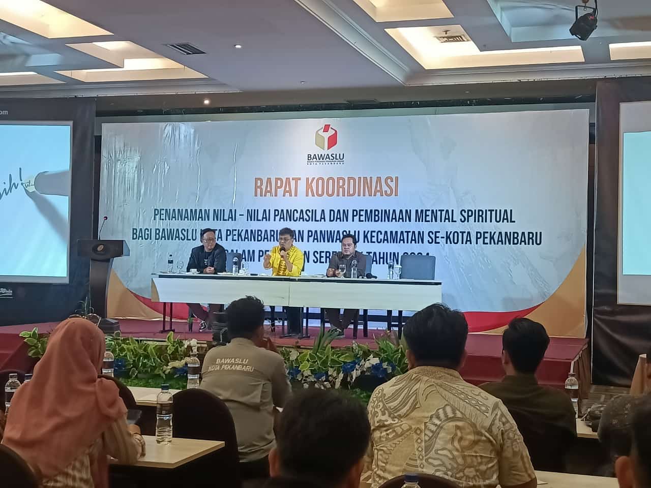 Bersiap membuka pendaftaran calon Gubernur dan Bupati/Walikota se-Riau, KPU Riau mengikuti rapat kordinasi (Rakor) pencalonan pada pemilihan serentak tahun 2024..