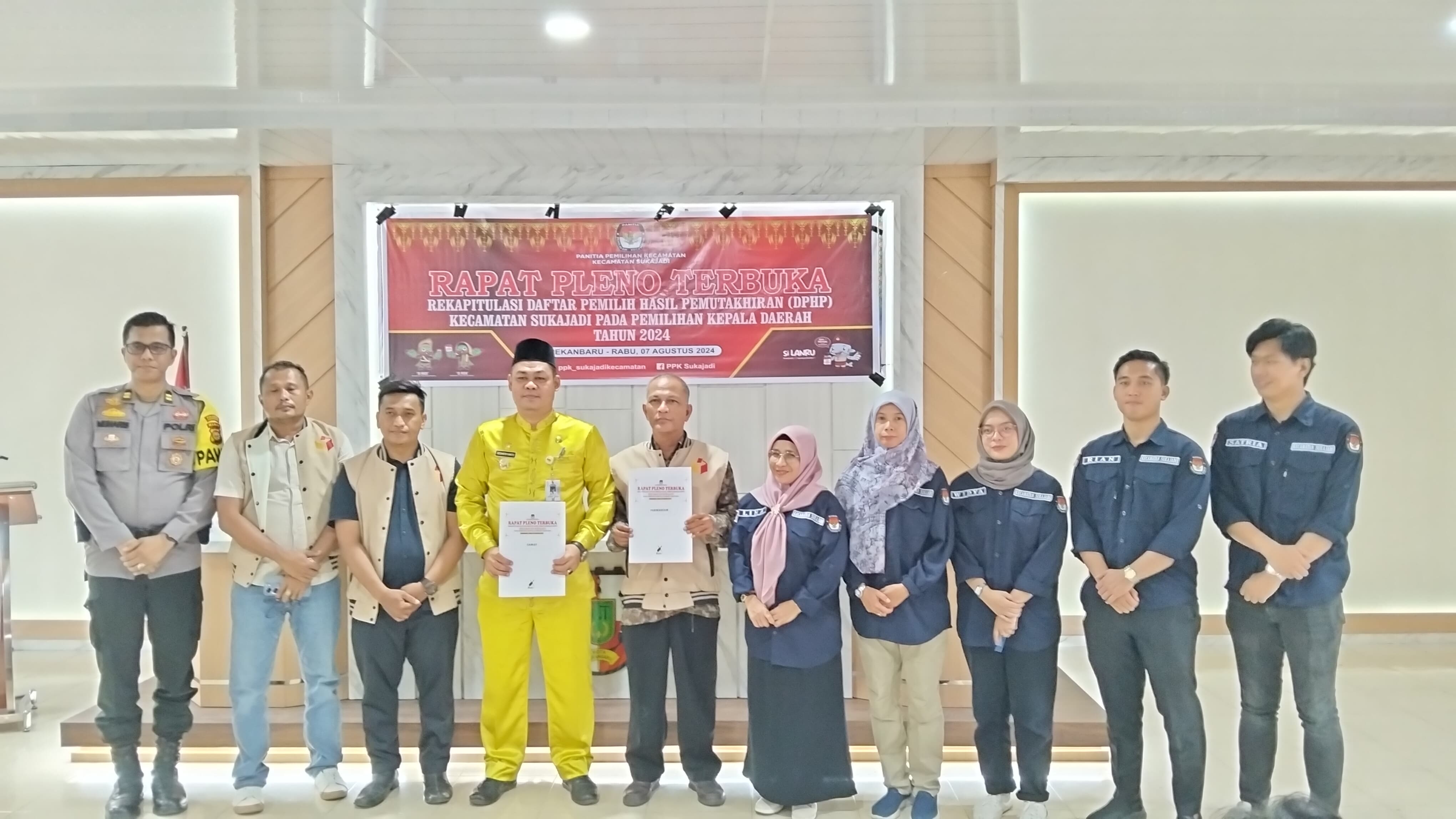 Dalam rangka pengawasan pada penyusunan daftar pemilih untuk Pilkada serentak tahun 2024, Ketua Panitia Pengawas Kecamatan (Panwascam) Sukajadi Arwin S Siadi, SH beserta anggota hadir pada rapat pleno rekapitulasi Daftar Pemilih Hasil Pemuktahiran.