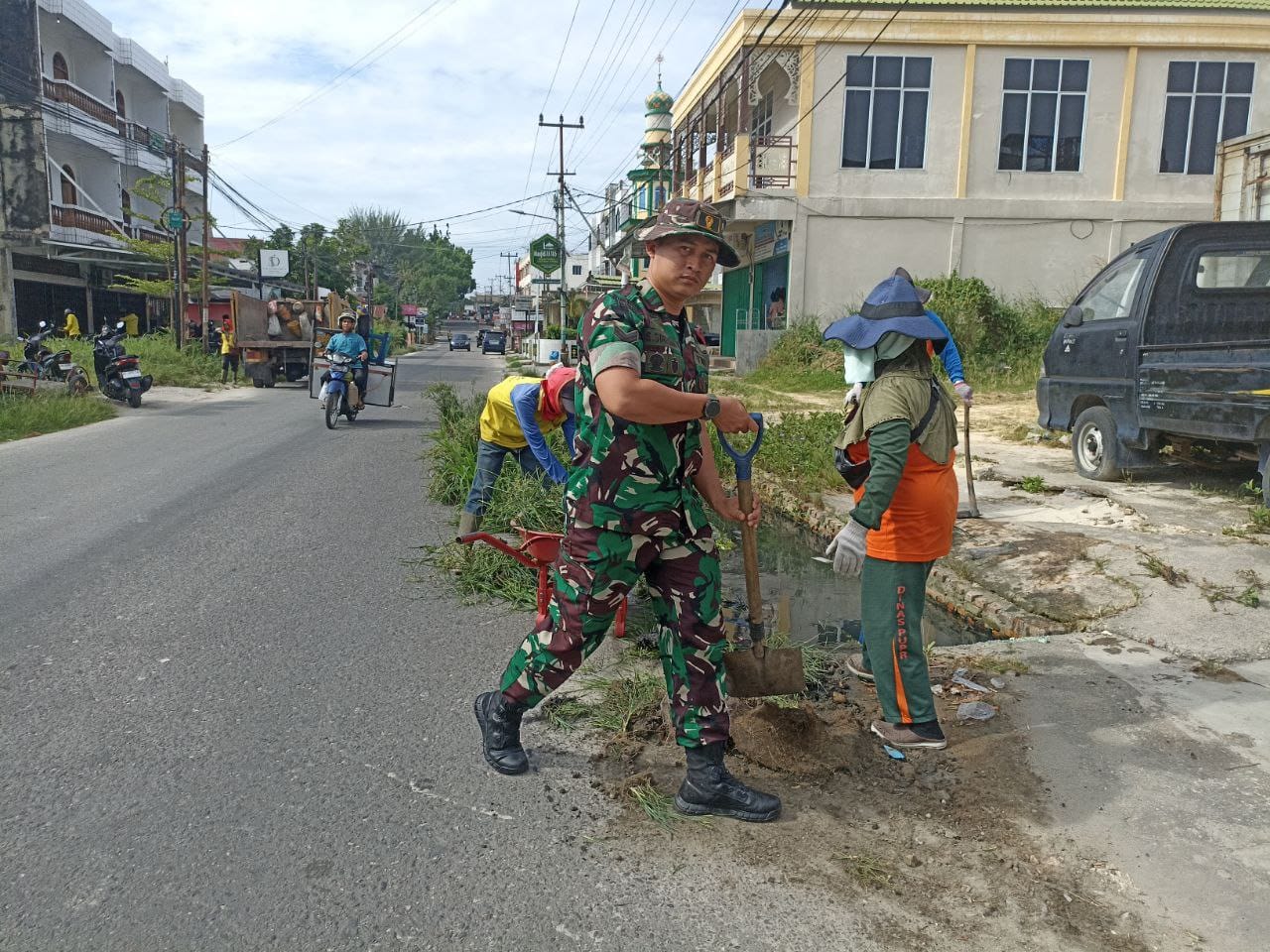 Cinta Kebersihan, Babinsa Sertu Sutan Siregar Bersama Warga Sukajadi Gotong Royong Bersihkan.