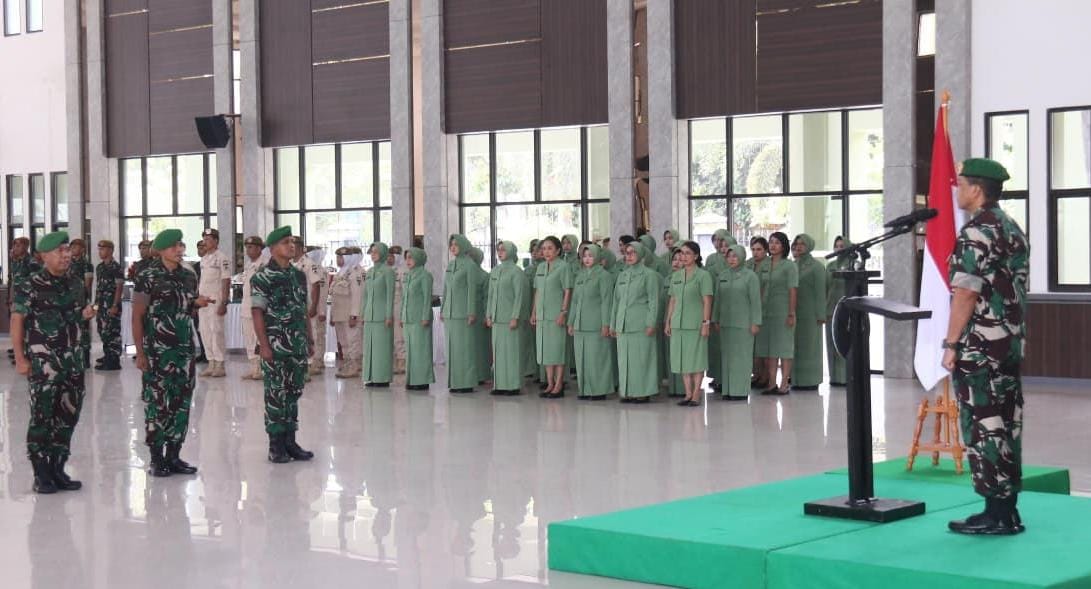 Dandim 0301/Pbr dan Ketua Persit Hadiri Acara Kenaikan Pangkat Prajurit Korem 031/Wira.