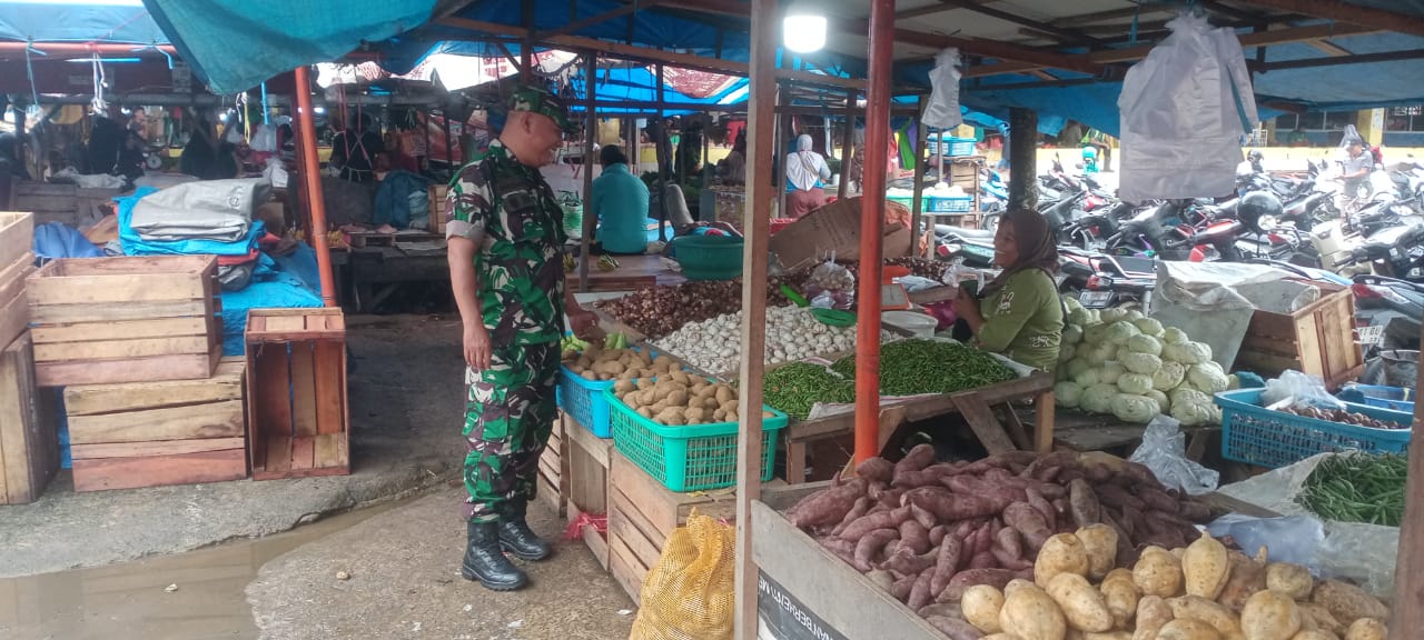 Babinsa Serda Sukiran Menyapa Pedagang Pasar Selasa Panam dengan.