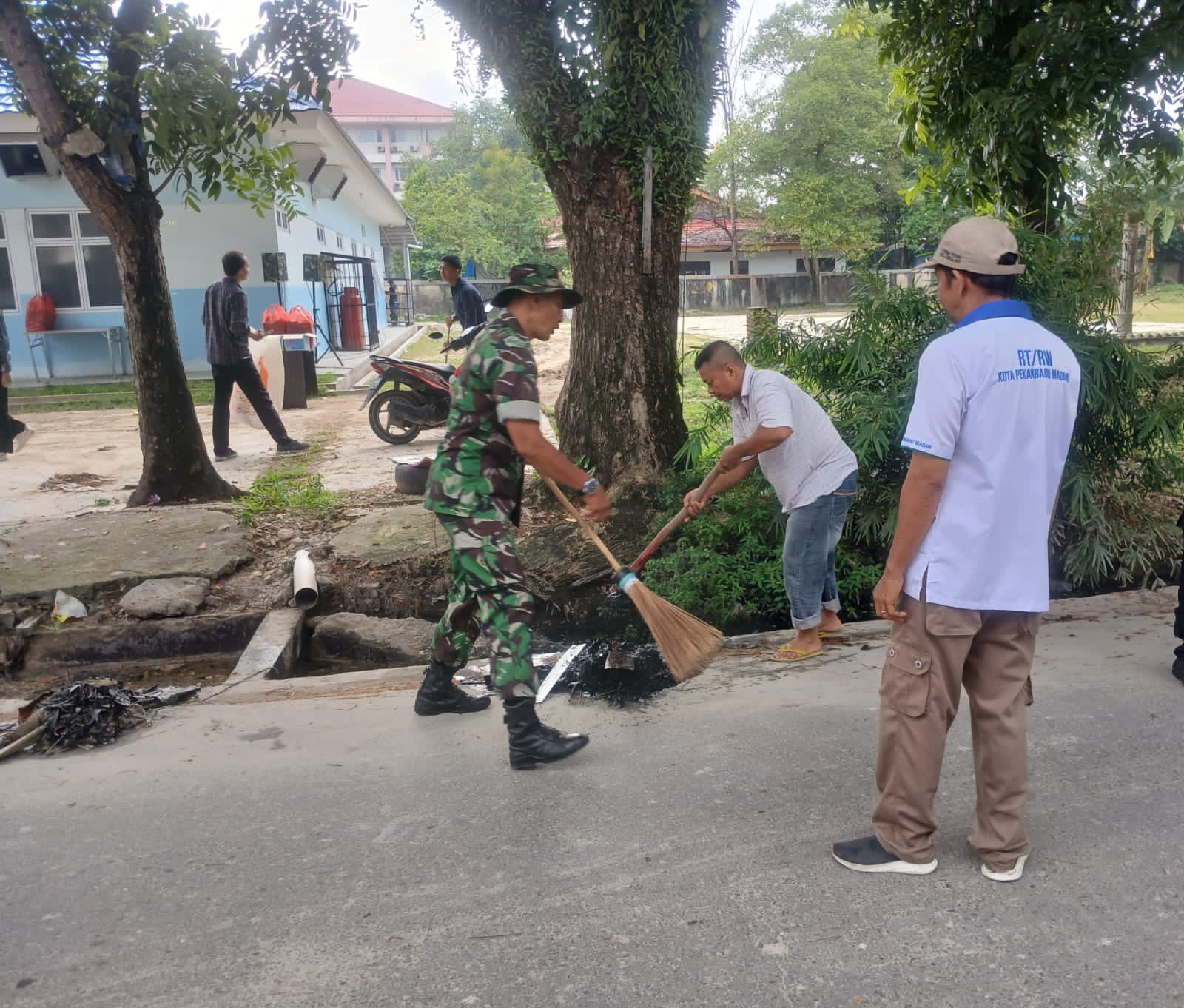 Babinsa Serka Noviandi Ajak Warga Hidupkan Semangat Gotong Royong dengan Bersihkan.