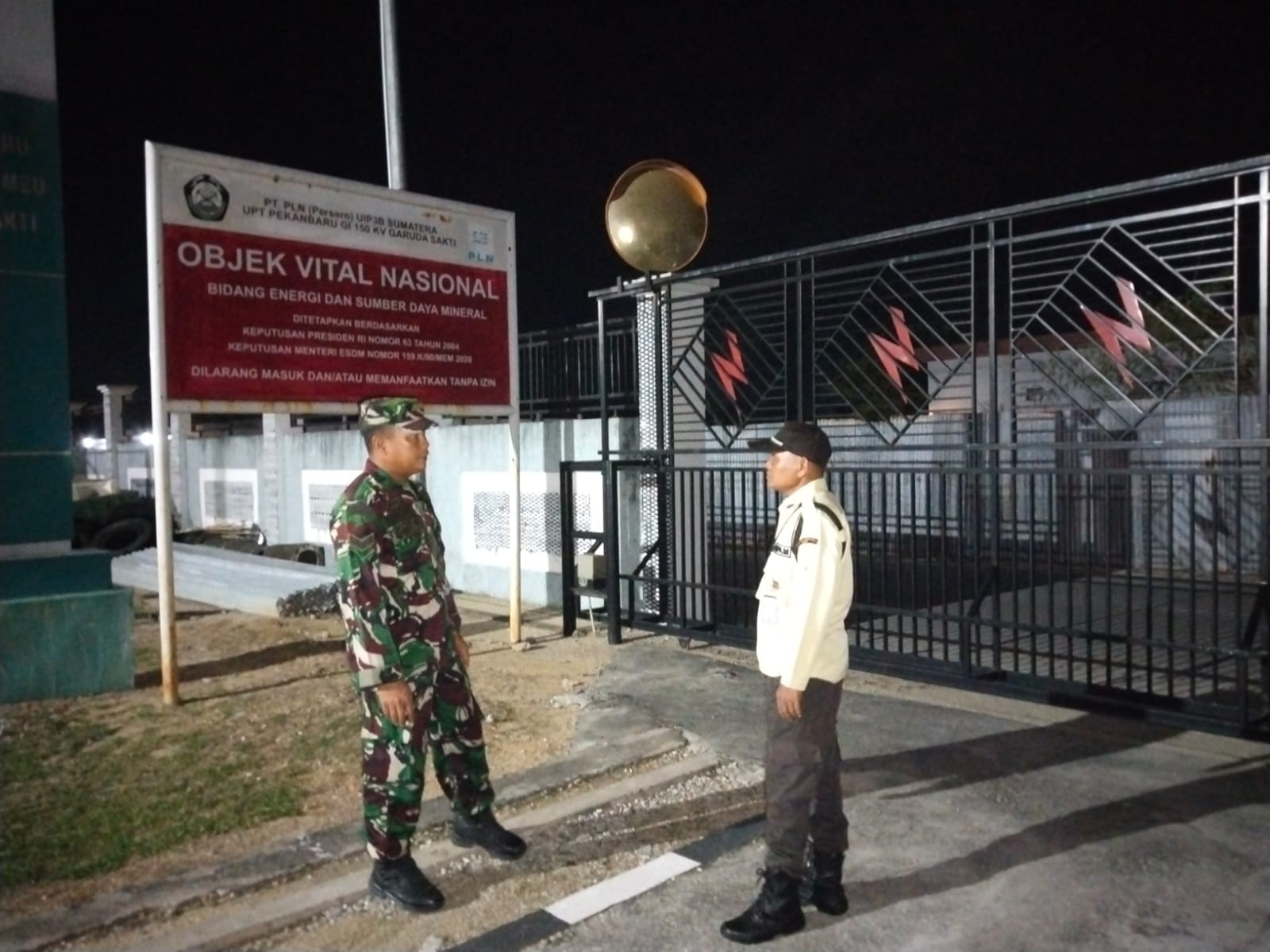 Babinsa Sungai Sibam dan Satpam Gelar Patroli Malam di Gardu PLN, Pastikan Keamanan Objek Vital.