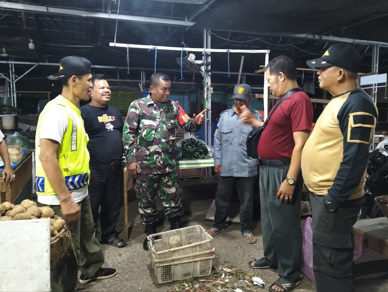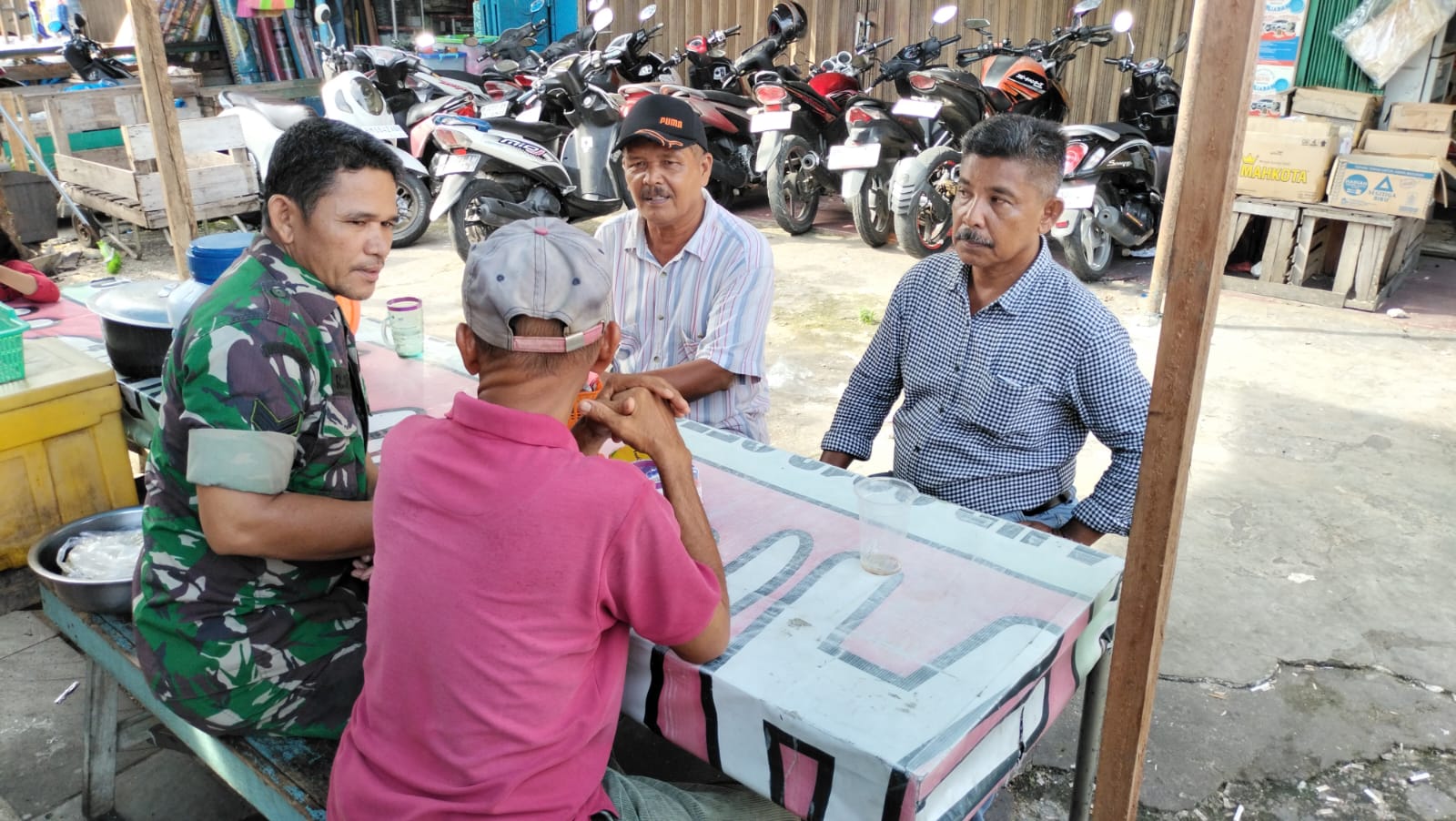Babinsa Sertu Robert Sitorus Sarapan Pagi Bersama Warga dan Pedagang Pasar Agus.