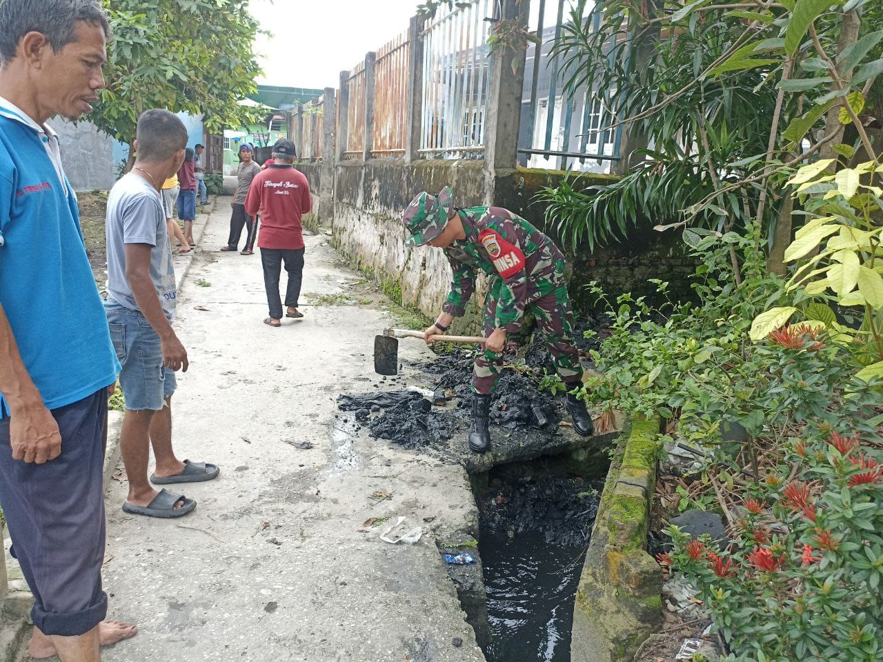 Babinsa Sertu Sutan Siregar Turun Tangan, Gotong Royong Bersihkan Parit Bersama Warga.