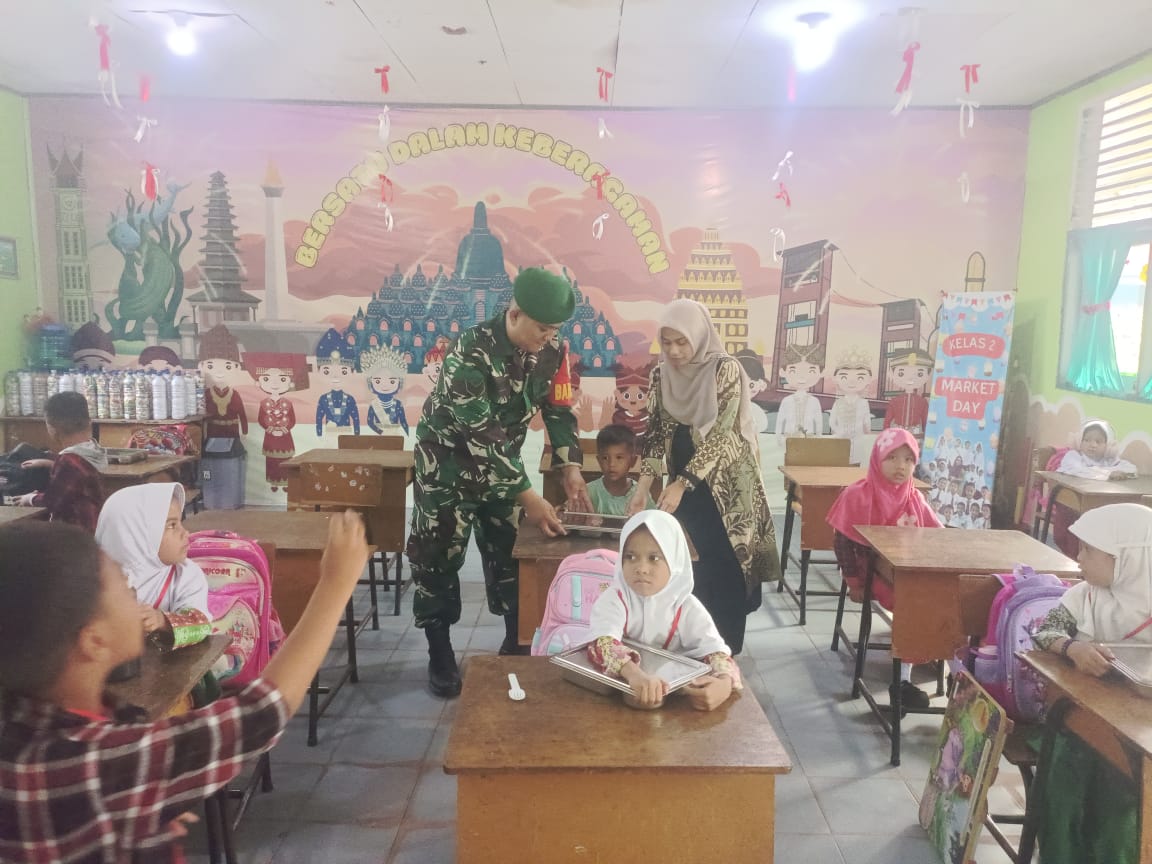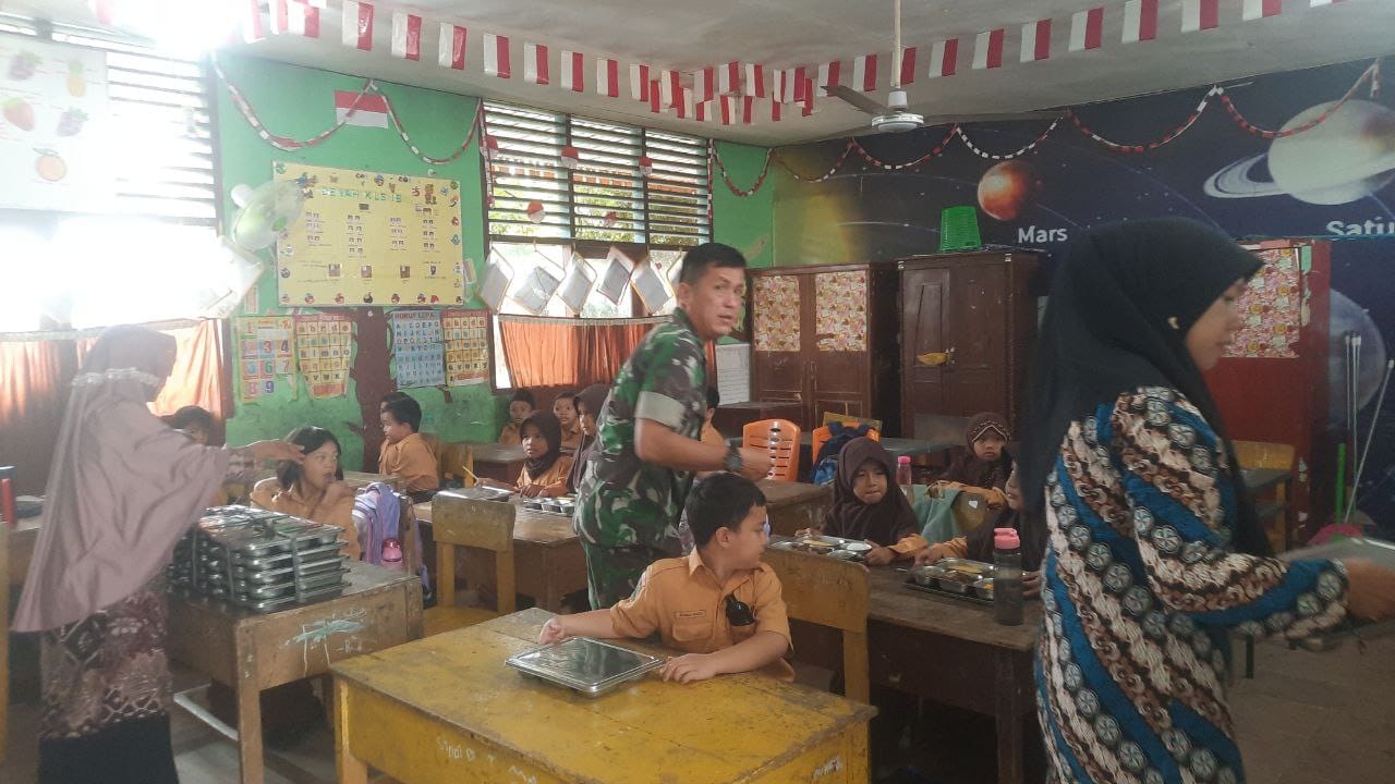 Babinsa Serka Toni Efendi Bagikan Makanana Bergizi Gratis untuk Siswa SDN 136.