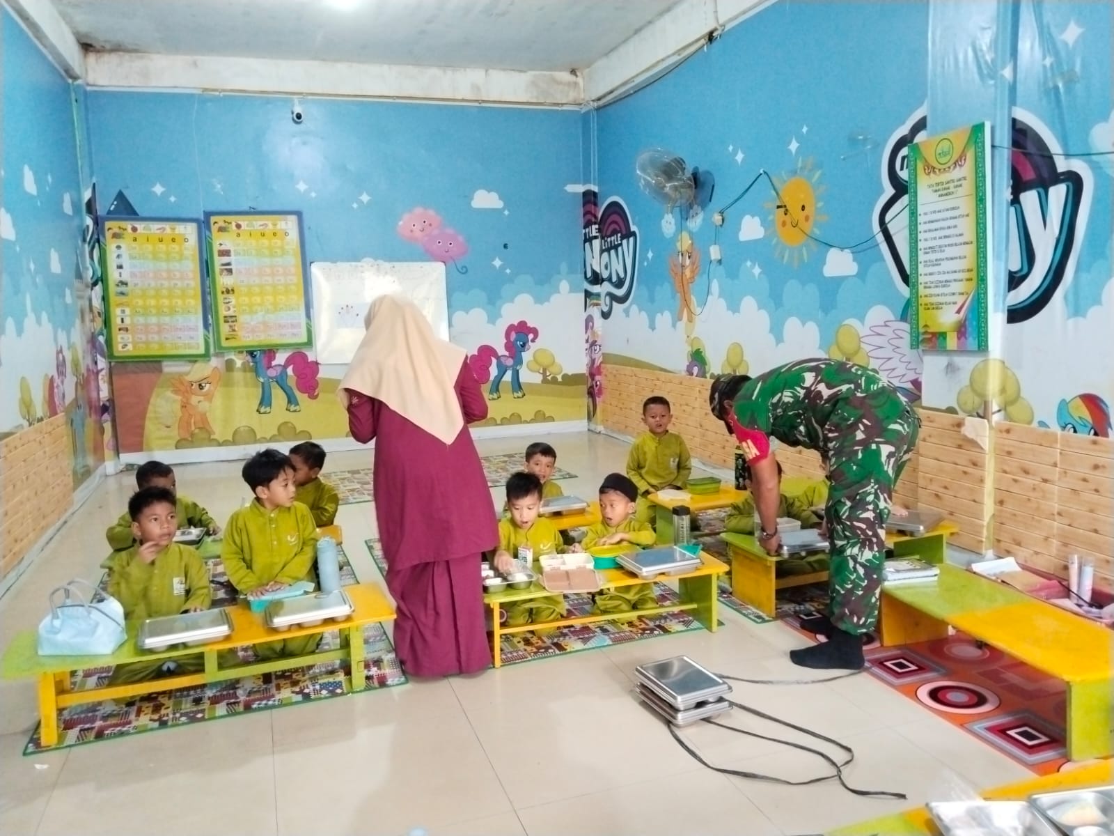 Kepedulian Terhadap Generasi Bangsa, Babinsa Sertu Parjo Bagikan Makanan Bergizi untuk Murid TK.
