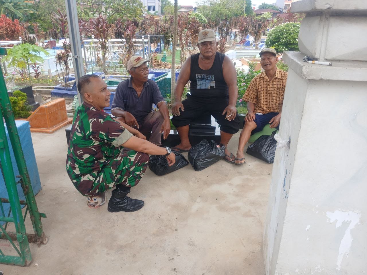 Disela Patroli, Serka Noviandi Sambangi Warga yang Membersihkan Pemakaman.