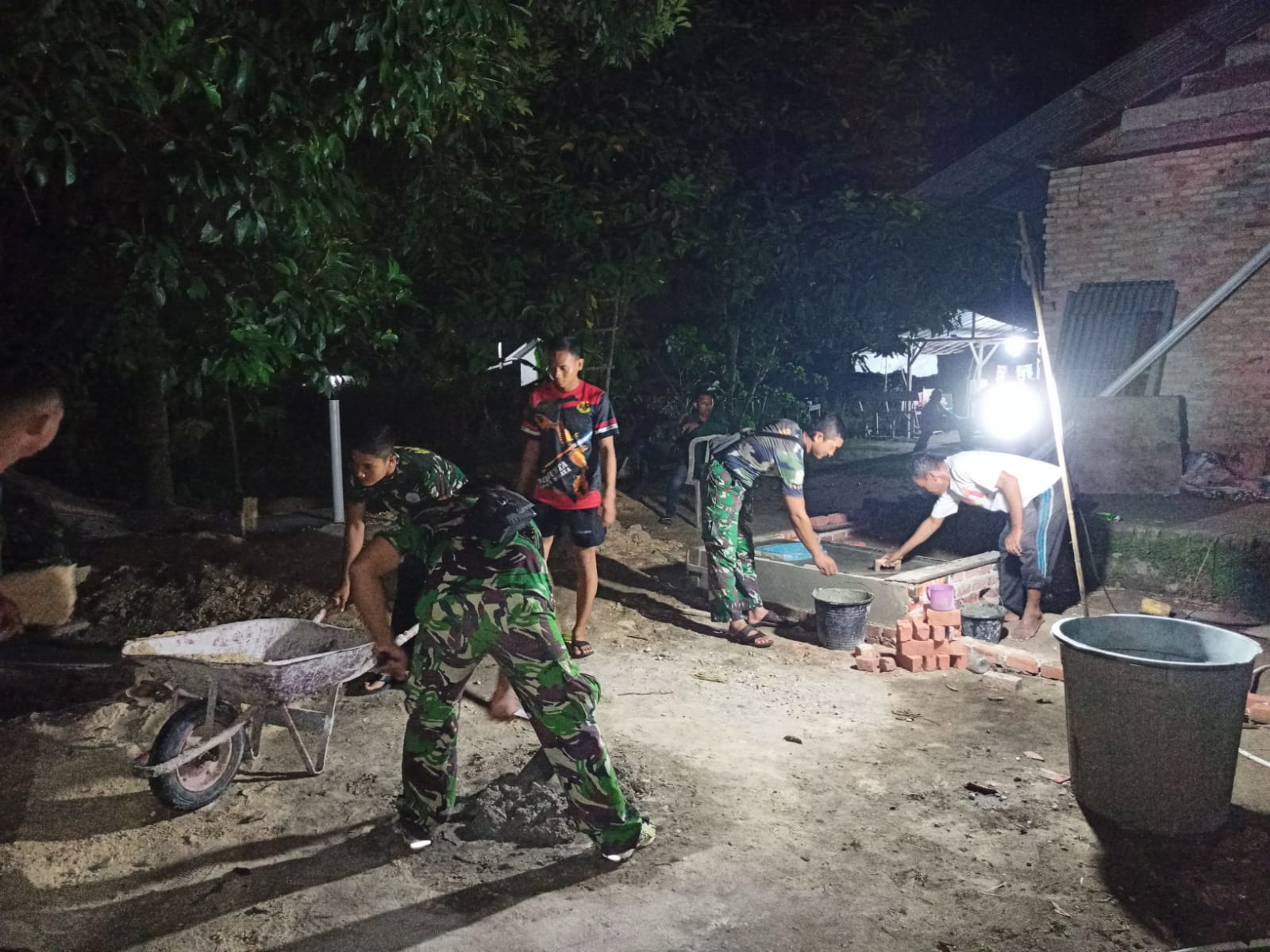 Salah satu upaya mewujudkan Kemanunggalan TNI dan Rakyat, Anggota Satgas TNI Manunggal Membangun Desa (TMMD) ke 114 Kodim 0301/PBR membantu warga Jalan Mawar RT 02 RW 02 Kelurahan Sialang Rampai Kecamatan Kulim, dalam pembuatan septic tank toilet.