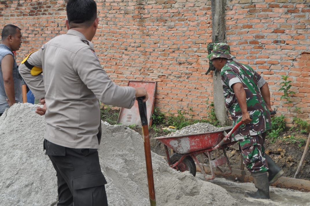 Ada pemandangan menarik di pelaksanaan program TNI Manunggal Membangun Desa (TMMD) ke 114 Kodim 0301/PBR, terlihat sinergitas Anggota Polri yang turut bekerjasama dengan TNI dan masyarakat, saling bahu membahu tak kenal lelah berjibaku dengan panas.