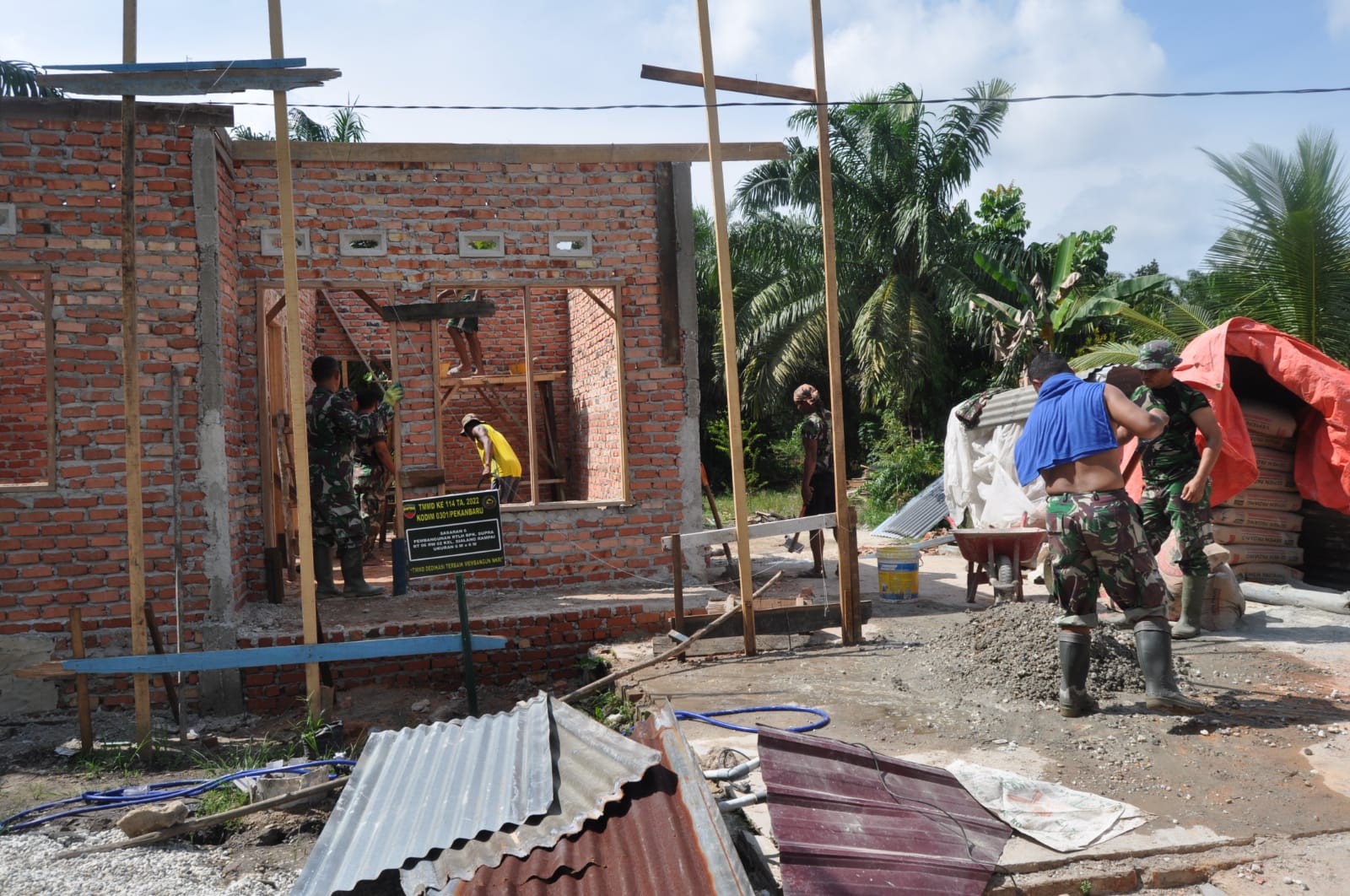 Pekerjaan fisik berupa merenovasi rumah diatas lahan yang berukuran 6 x 6 meter milik Prahara di hari ketujuh terus digesa pengerjaan. Perehaban ini merupakan Program TNI Manunggal Membangun Desa (TMMD) ke 114 Kodim 0301/PBR di Kelurahan Sialang.