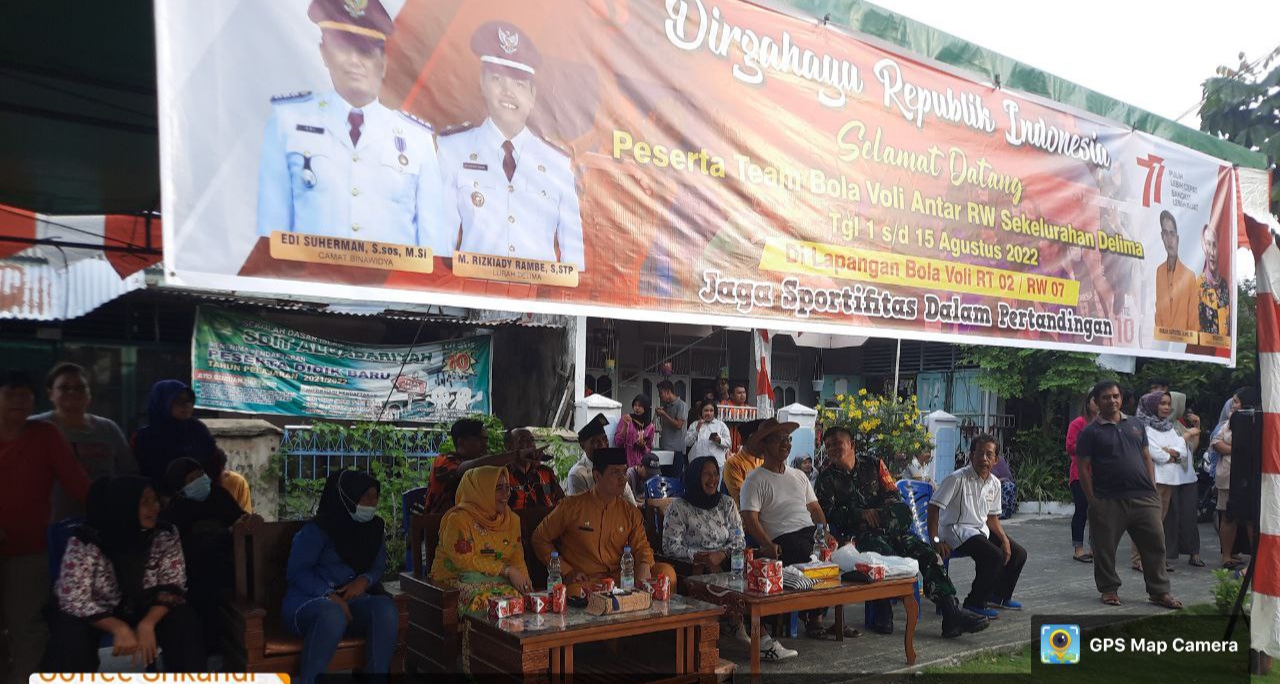 Bintara Pembina Desa (Babinsa) Koramil 06/Sukajadi Kodim 0301/PBR, Serka Toni Efendi menghadiri pembukaan pertandingan bola volli putra/putri antar RW se- Kelurahan Delima, di lapangan bola volli RT 02 RW 07, Selasa.